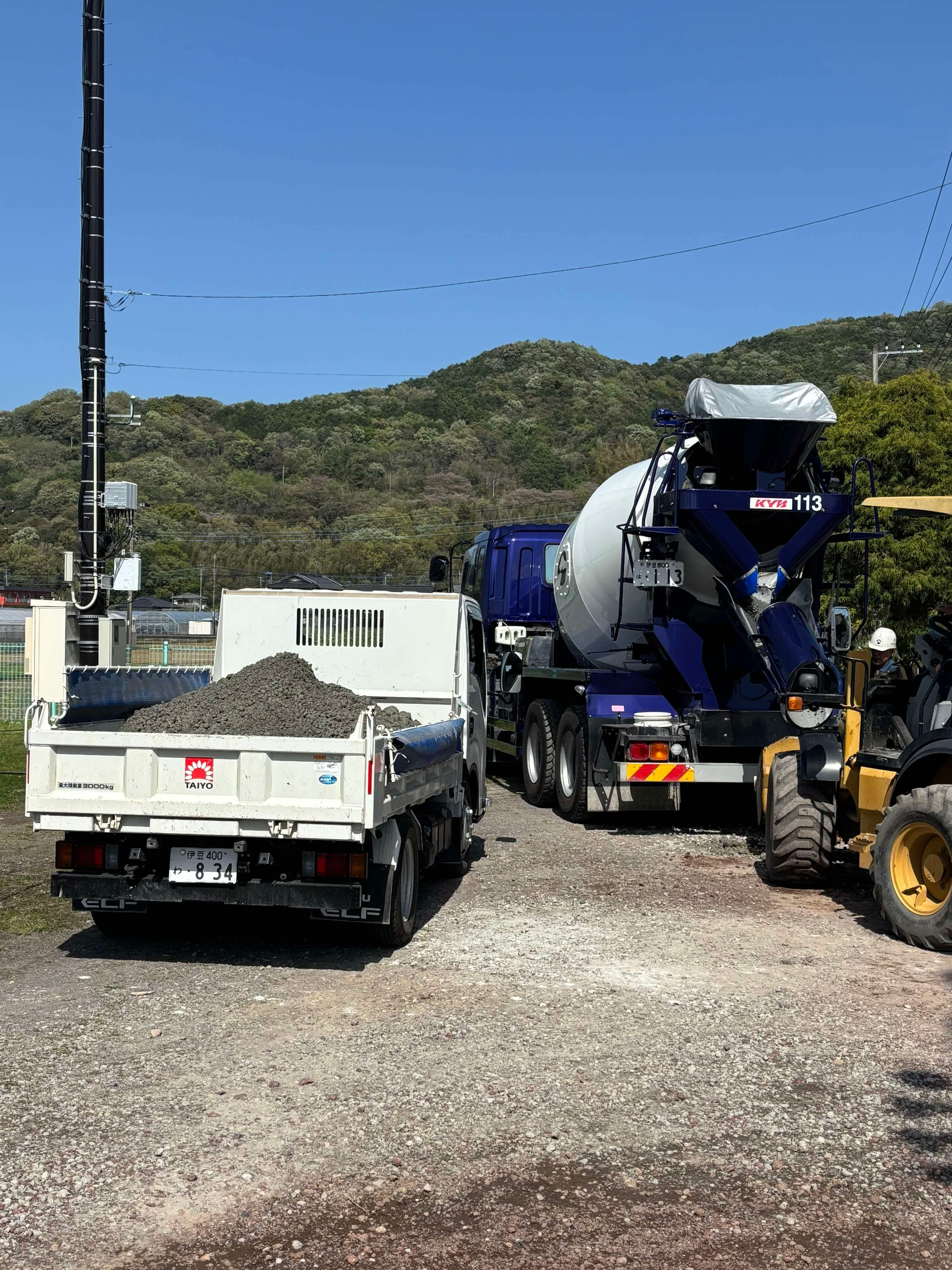 CNコンクリートを オワコン®︎ (造粒ポーラスコンクリート)に改質したエコフレンドリーな製品の荷下ろし地点視察。ここから現場までダンプで搬送します