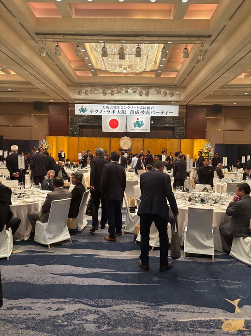 全国の生コン関係者が勢揃いになって行われたテクノ・ラボ大阪のご紹介でした。大阪広域生コンクリート協同組合さんからはその後のパーティーで日本一協同組合宣言が行われました。