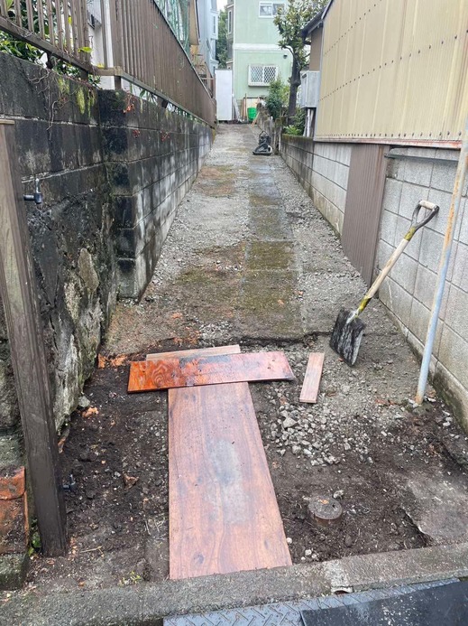 バイク通路にオワコン®︎が採用されました。 オワコンにしておけば水はけもいいから雨の日も水たまりやぬかるみが生じません。草が生えてきたりもしません。快適な供用をお約束します
