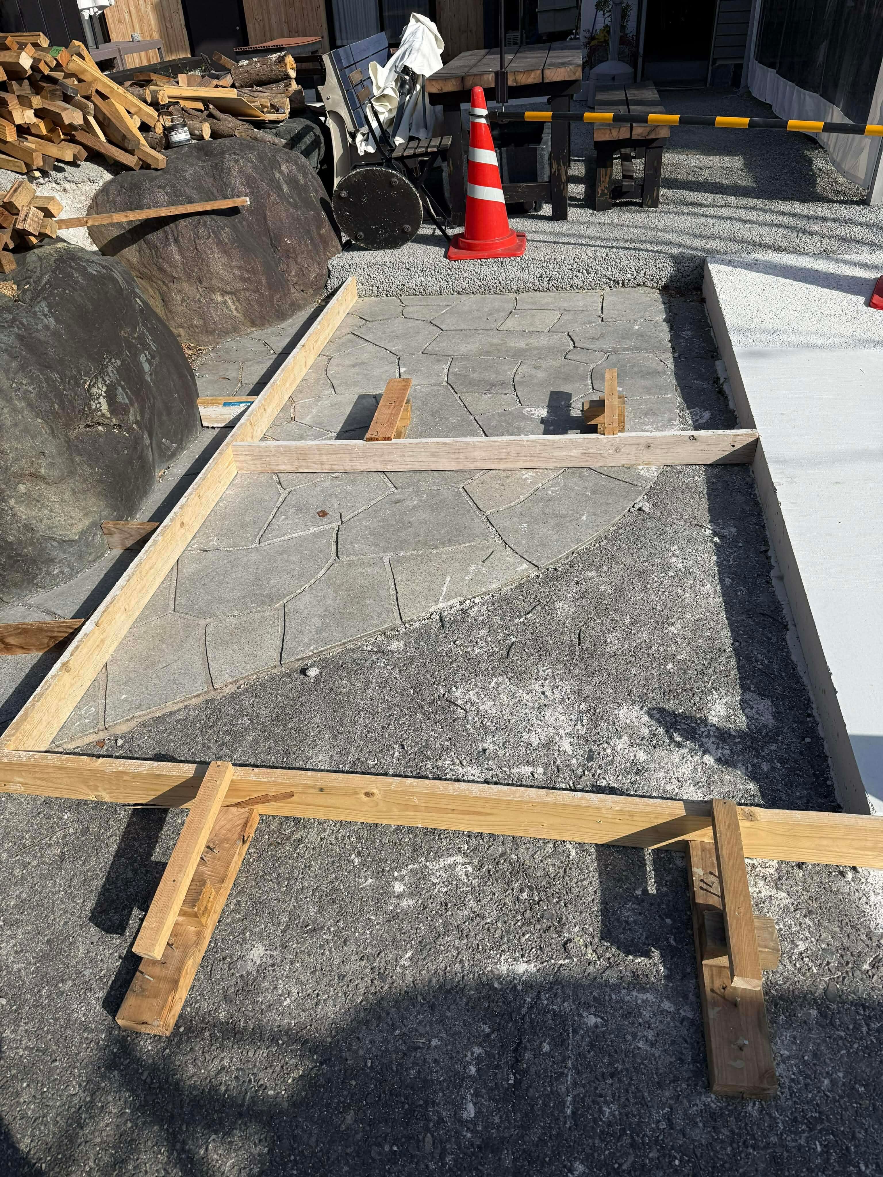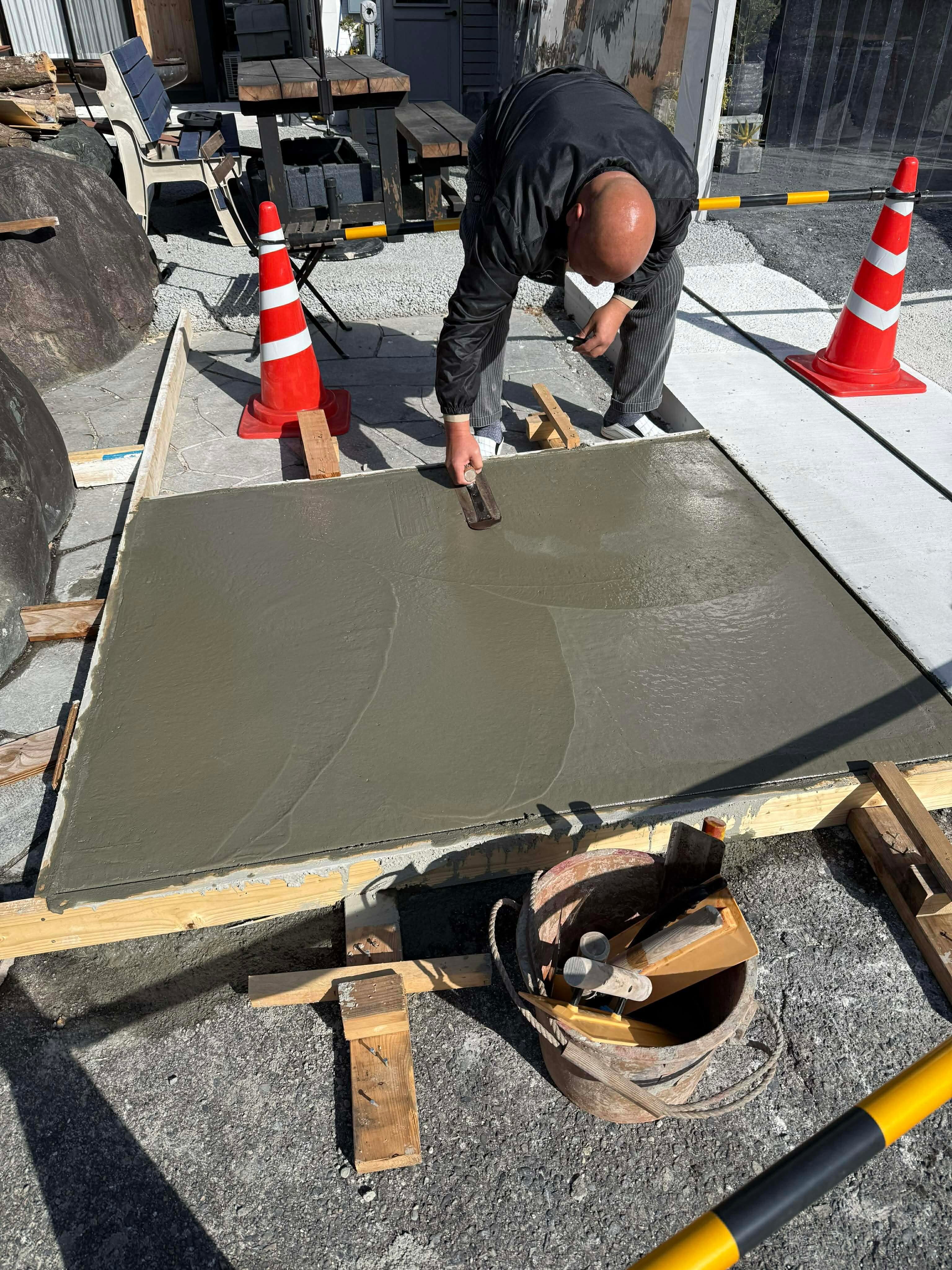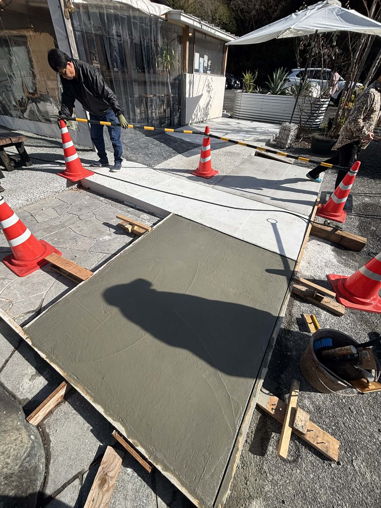 白い土間コンの引き立て役として普通の土間コンが設置されましたのでそちらのご紹介ですー。。