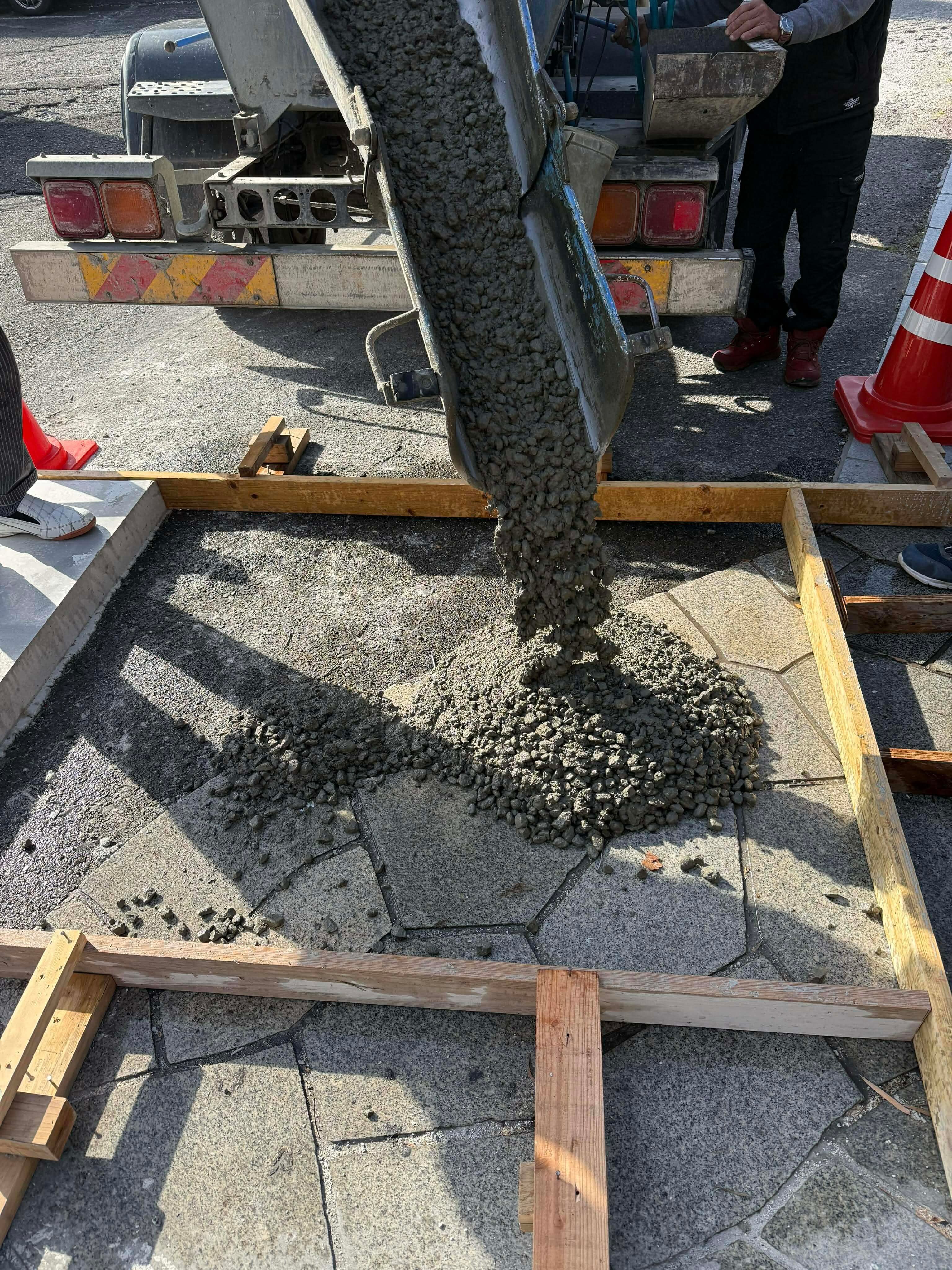 白い土間コンと普通の土間コンとでは原材料生コンの時点で全然色が違うのでご覧ください。