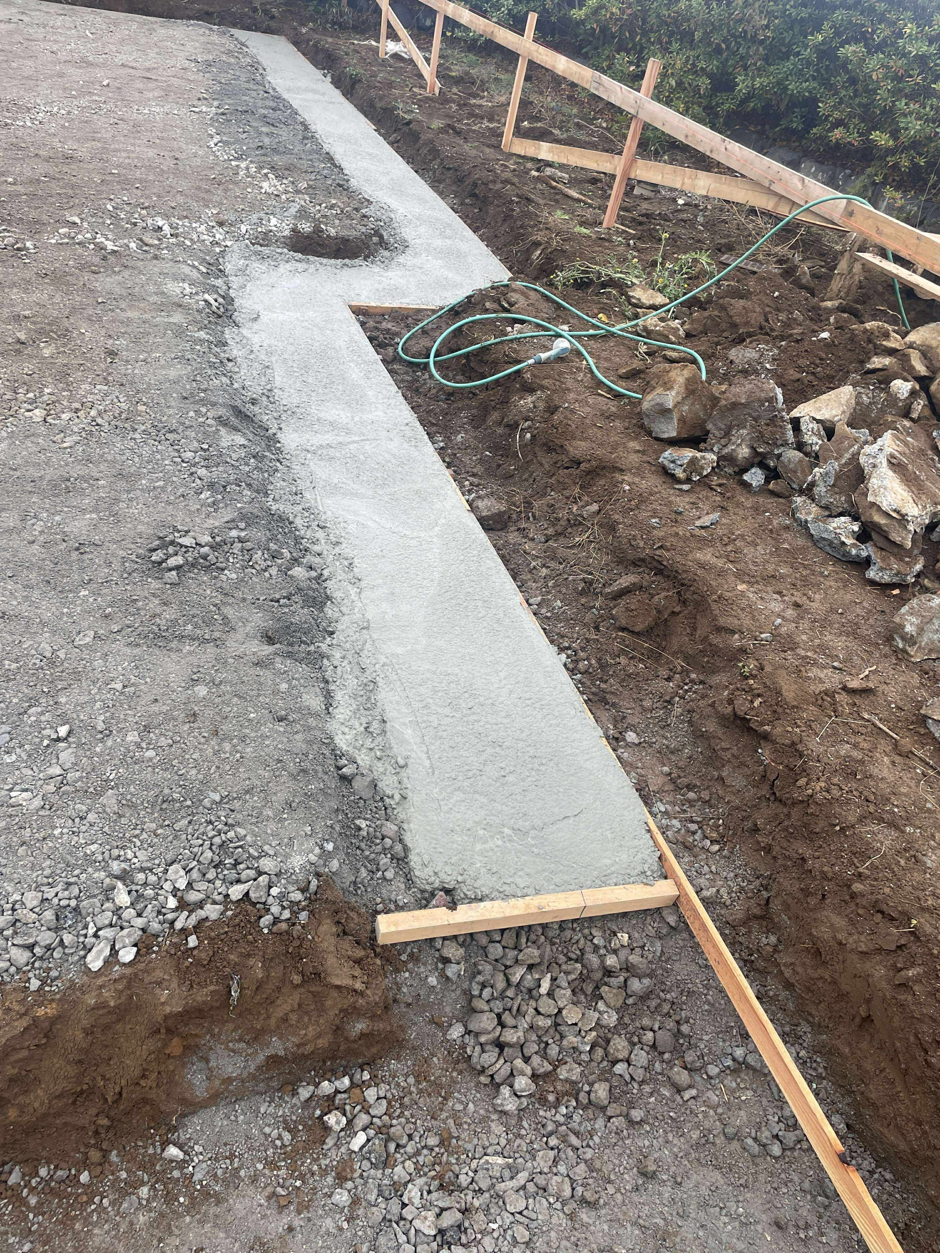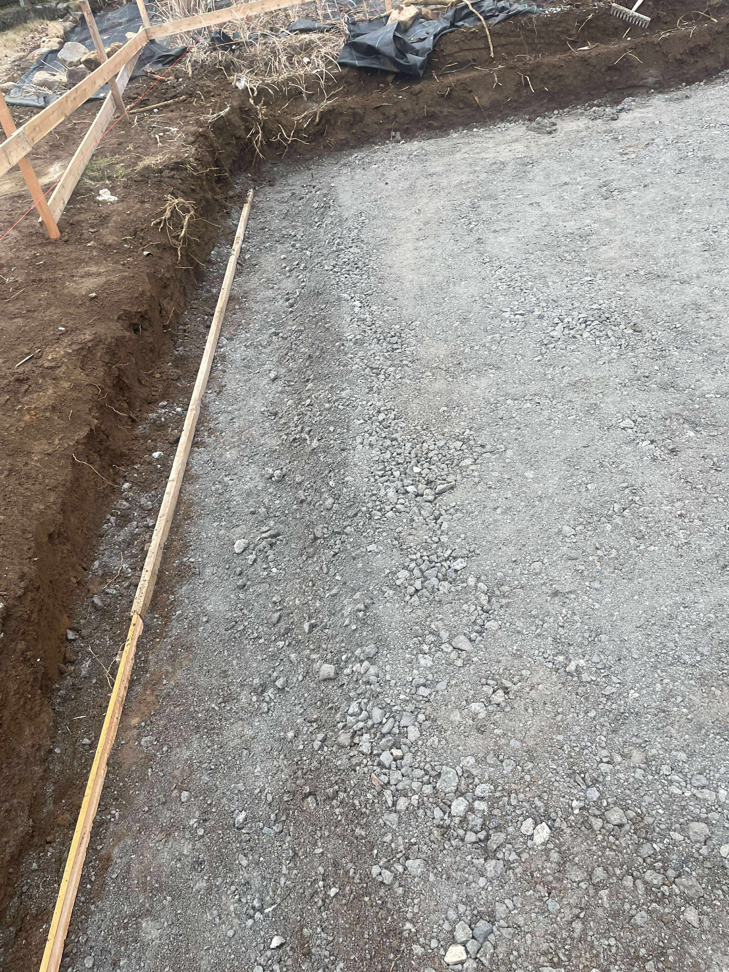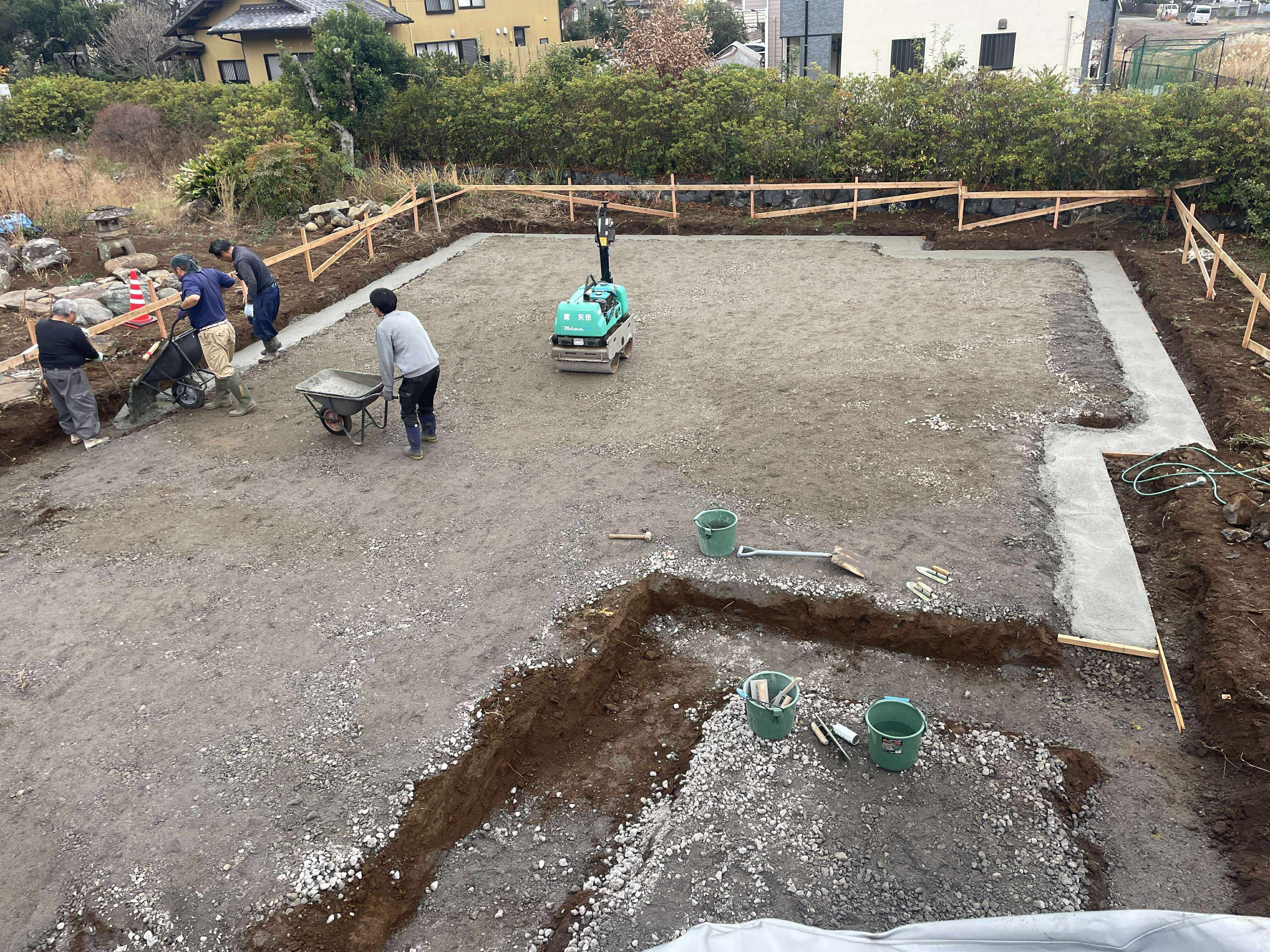 ザンコン™︎ Before。捨てコンと言って型枠を設置するための平な場所を確保するために用いられる非構造コンクリートだからJISマークついてなくても全然OK