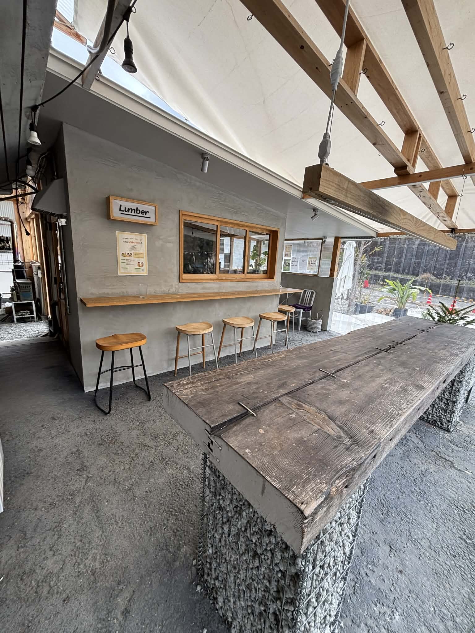 ミヤケンプロデュースのカフェLumberにも端材や解体で発生する木材(副産物)やザンコン™︎由来のコンクリートが部材としてふんだんに採用されています
