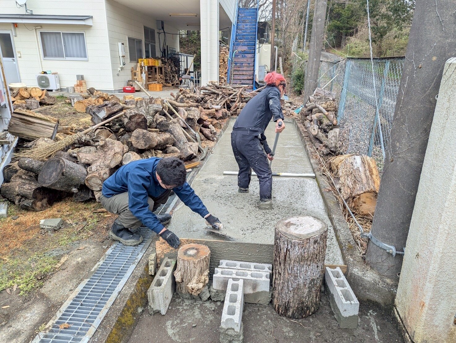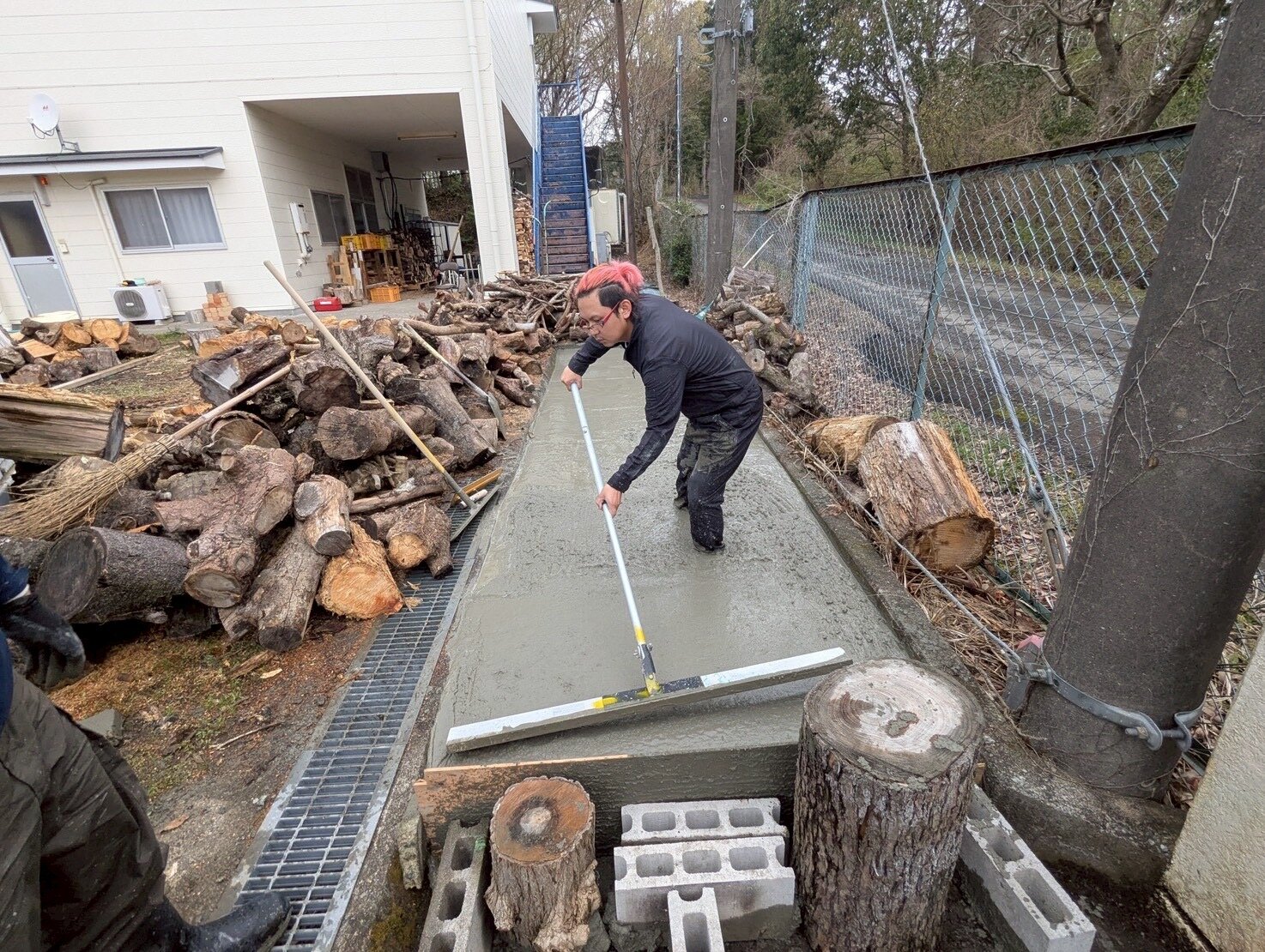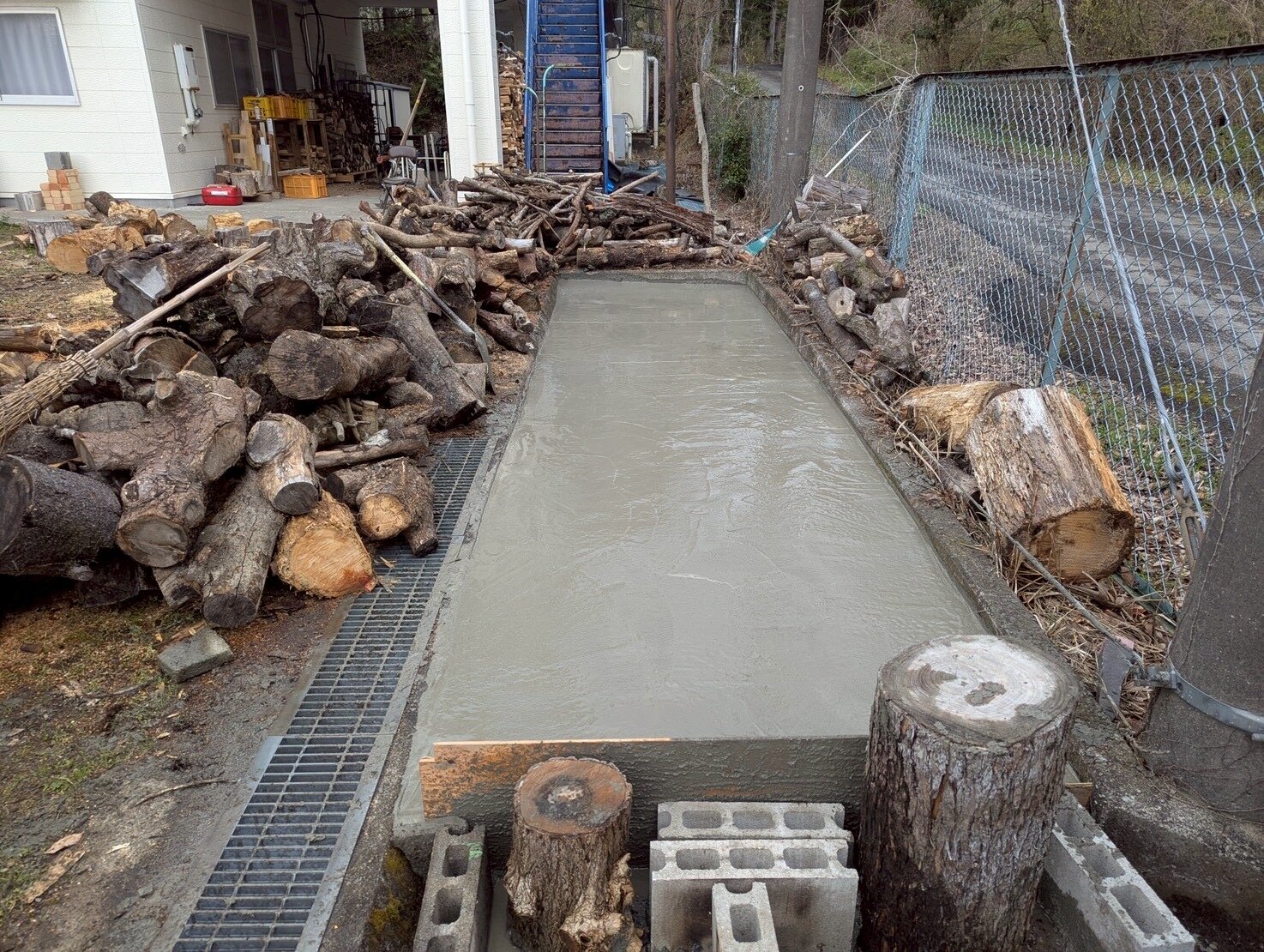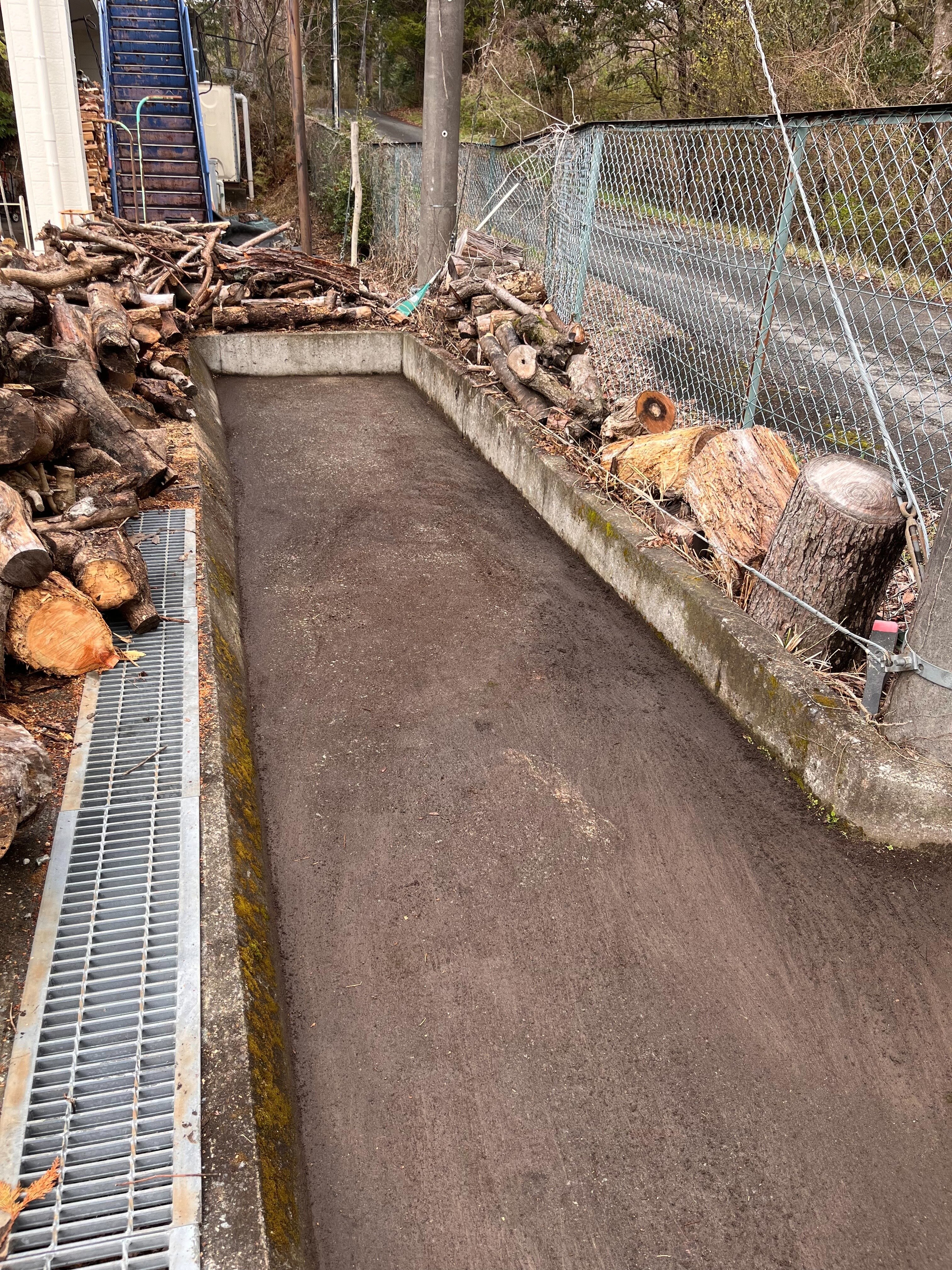 こちらはもともと校門をしまう溝でして、この場所から学校裏まで軽トラックで薪を運搬できるように溝を埋め、スロープを作らせていただいております。