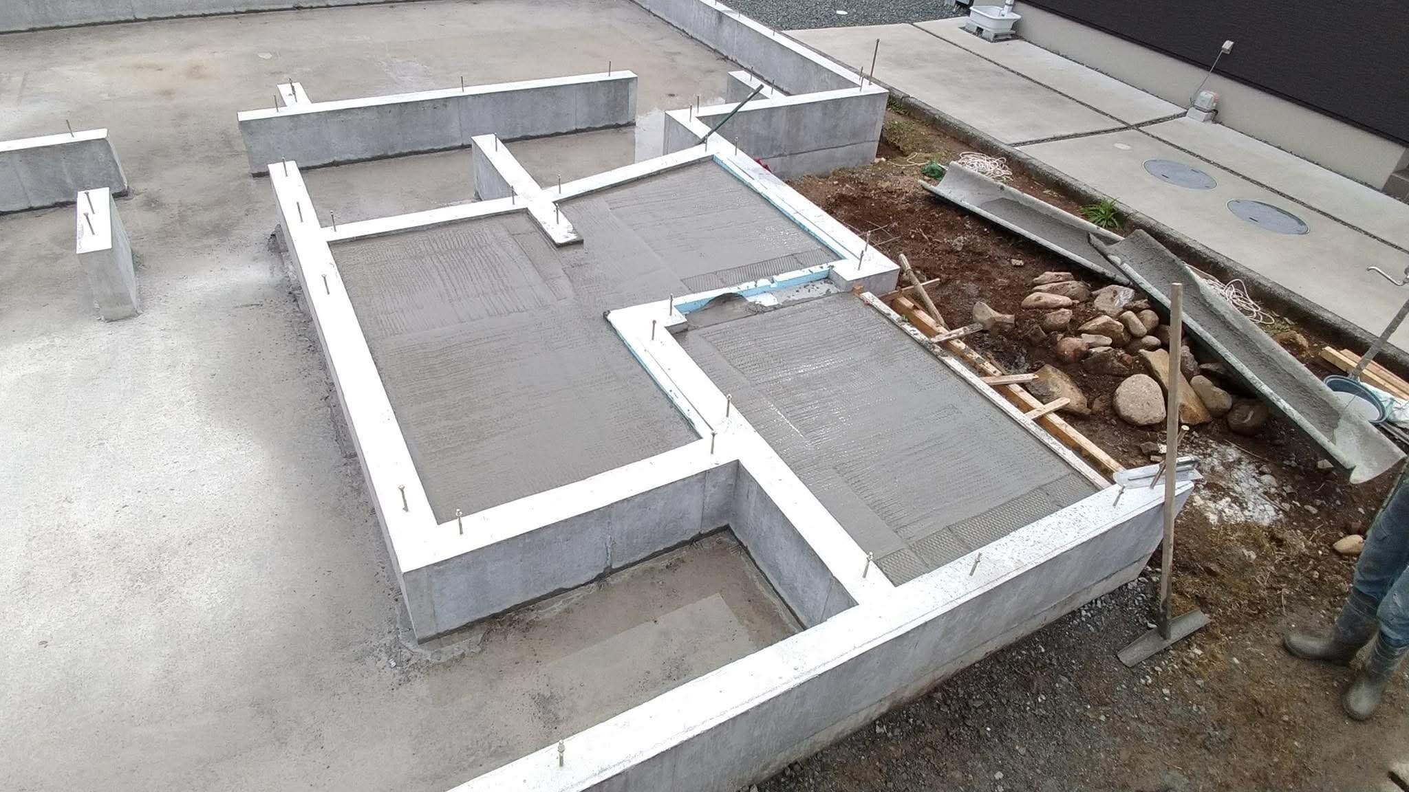 地面が露出している布基礎の床下空間に、地中からの湿気上昇を防ぐ目的で打設されるコンクリートのことです。通常の「ベタ基礎」が建物全体の荷重を支える構造材であるのに対し、布基礎におけるこのコンクリートは、主に防湿・防蟻(シロアリ対策)を目的とした非構造部材として扱われます。オワコンの宮本さん)つまり、構造体ではなく、単純に地面から沸き立つ湿気を抑えるだけの用途だからザンコン™︎でいいじゃん!
