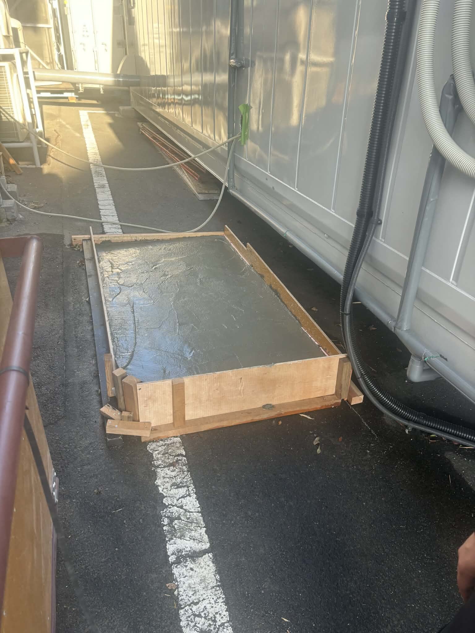 こちら、反射炉ビアの製造所に設置される機械設備を支えるための土台に採用されたのは実際に生コン工場で製造され現場に届けられ余剰となって戻ってきた生コン、いわゆる残コンを品質管理してそのままその時に ザンコン™︎ としてお届けされました。ザンコン™︎ は副産物を再合成することで白い土間コンの原材料などとして用いられていますが、余ったその時その場所でニーズに出会うことができればそのまま再利用が最もエコロジーな利用方法となります