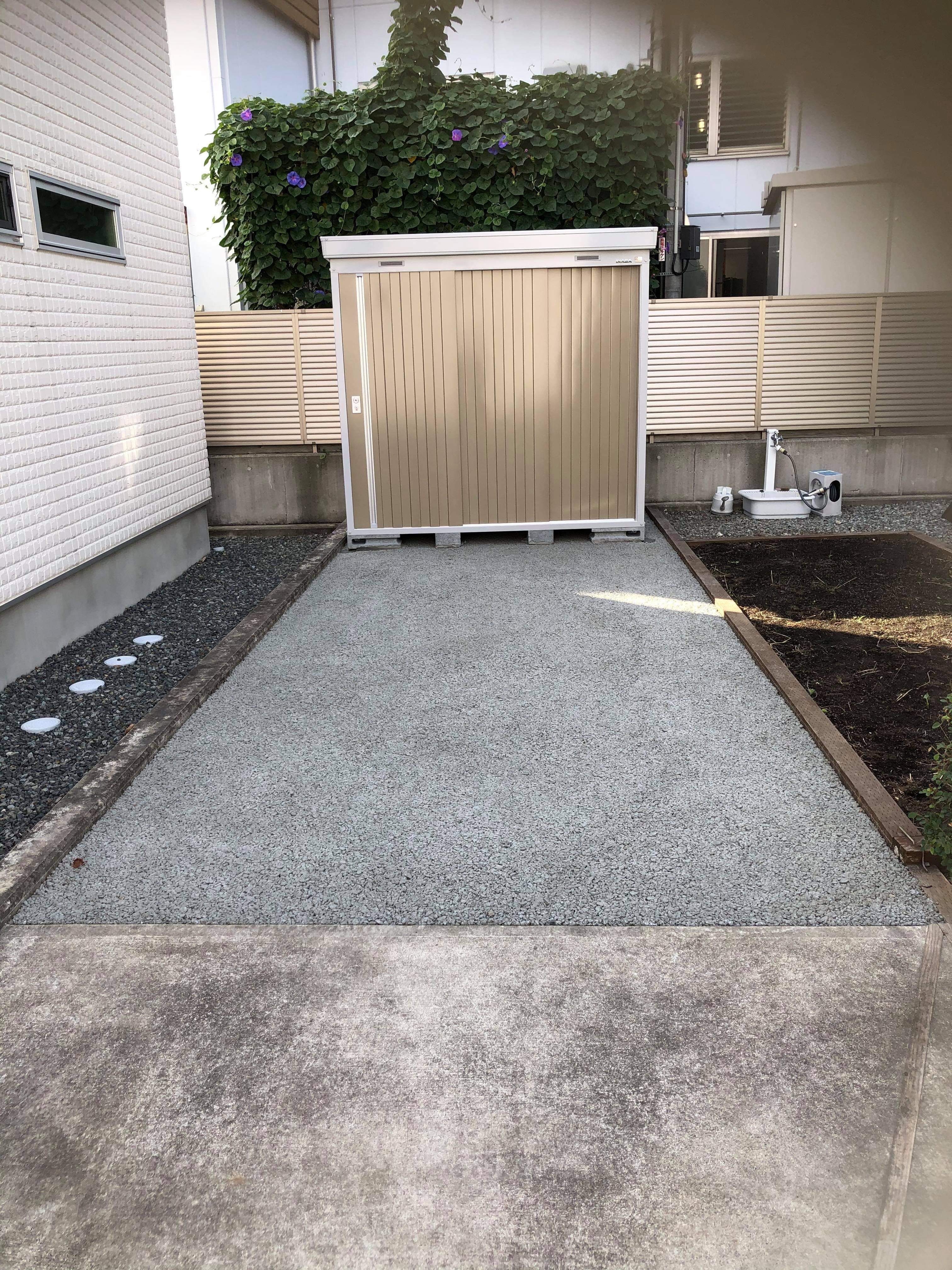 水勾配もないため水平を取る必要もない物置の設置は楽だったはずだ。