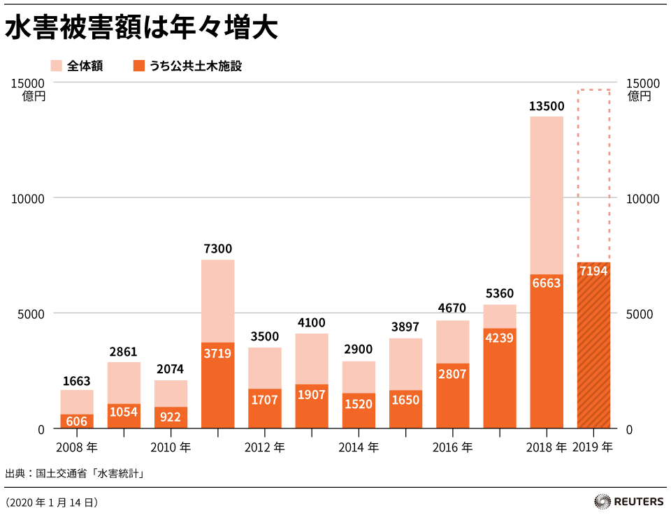 このまま水害被害額はどこまで伸びていくのか。