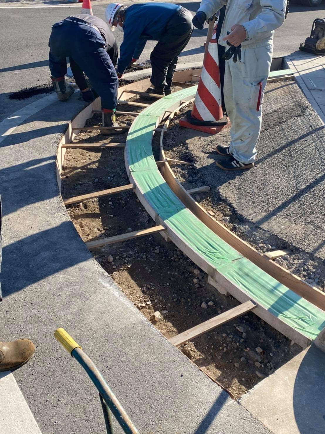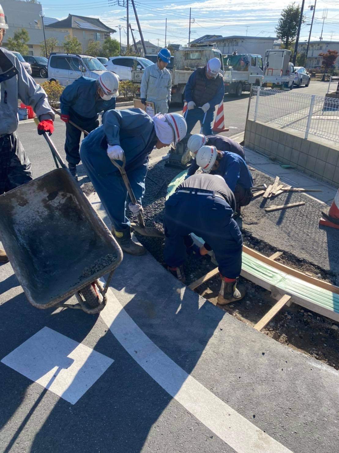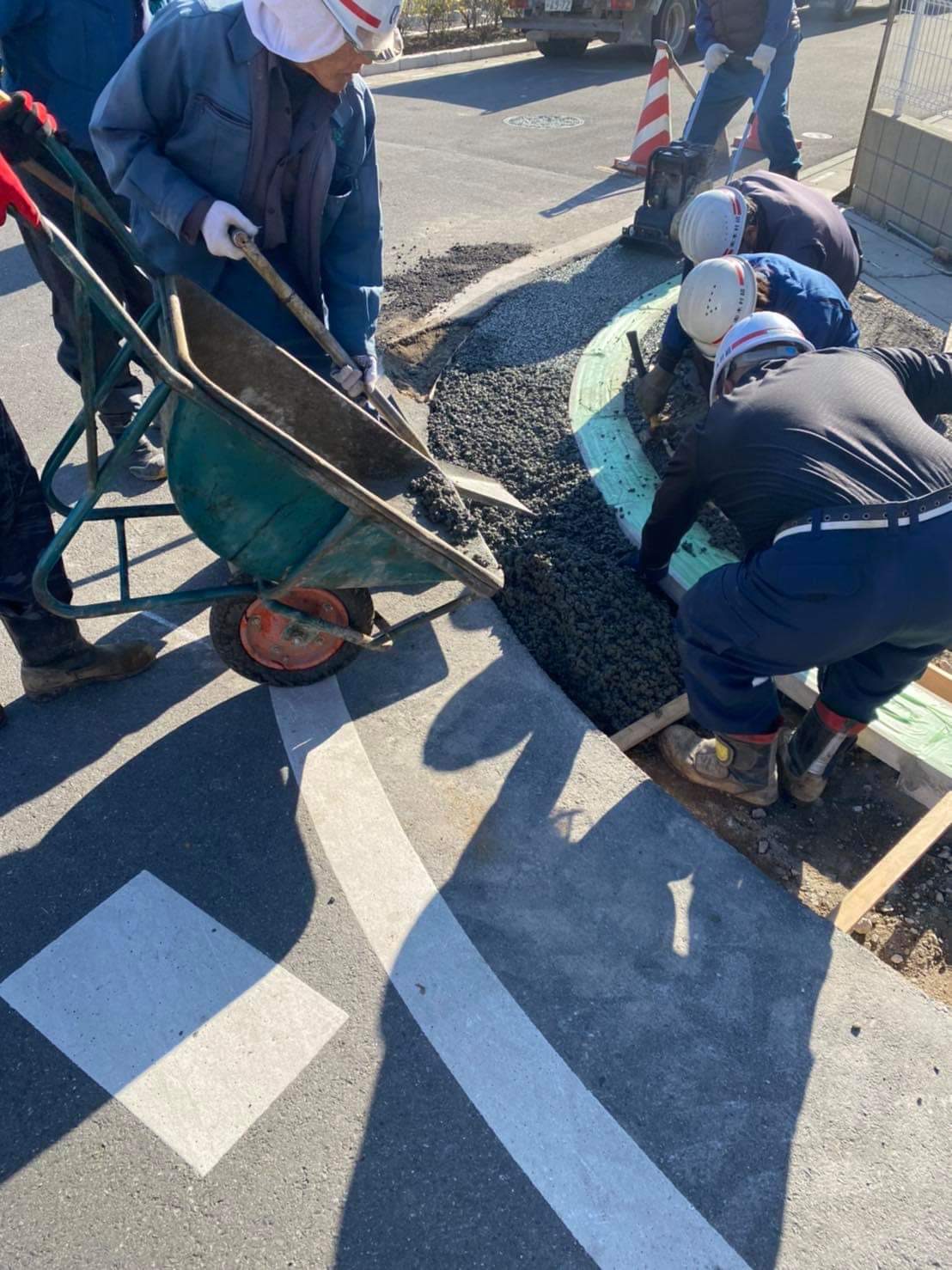 埼玉県某交差点の市道エプロン部のコンクリート打設。
