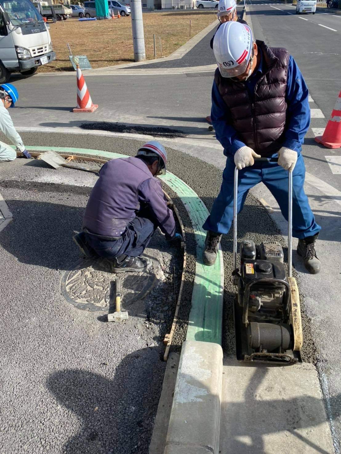 1.5m3/12m2の交差点エプロン部を7名でたったの40分で完成させた。