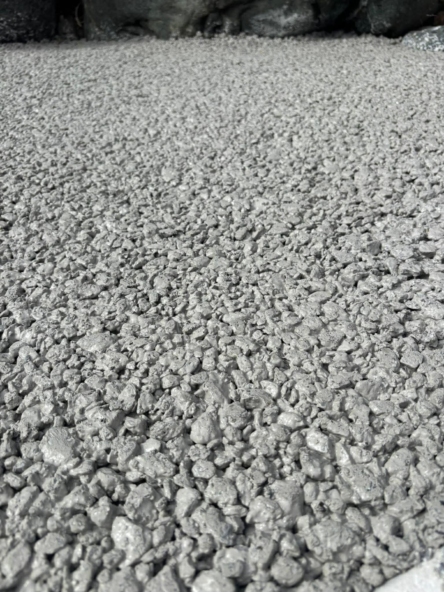 生コンポータルの白い土間コン™︎シリーズには通常の土間コンはもちろん、排水性(ポーラス)オコシコン®︎もあります。 結合材(普通ポルトランドセメント)を100%高炉スラグ微粉末(エスメント)に置換しザンコン™︎アルカリ刺激剤(ジョイスラッジ)で強度発現を促進しています。「地球に蓋しない」つまり呼吸をするだけでなく脱炭素で資源循環が特徴です
