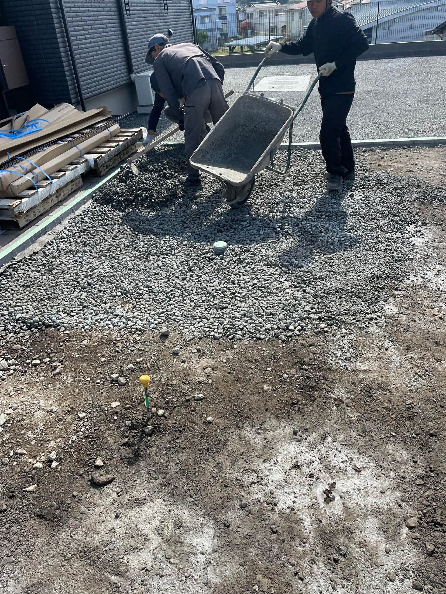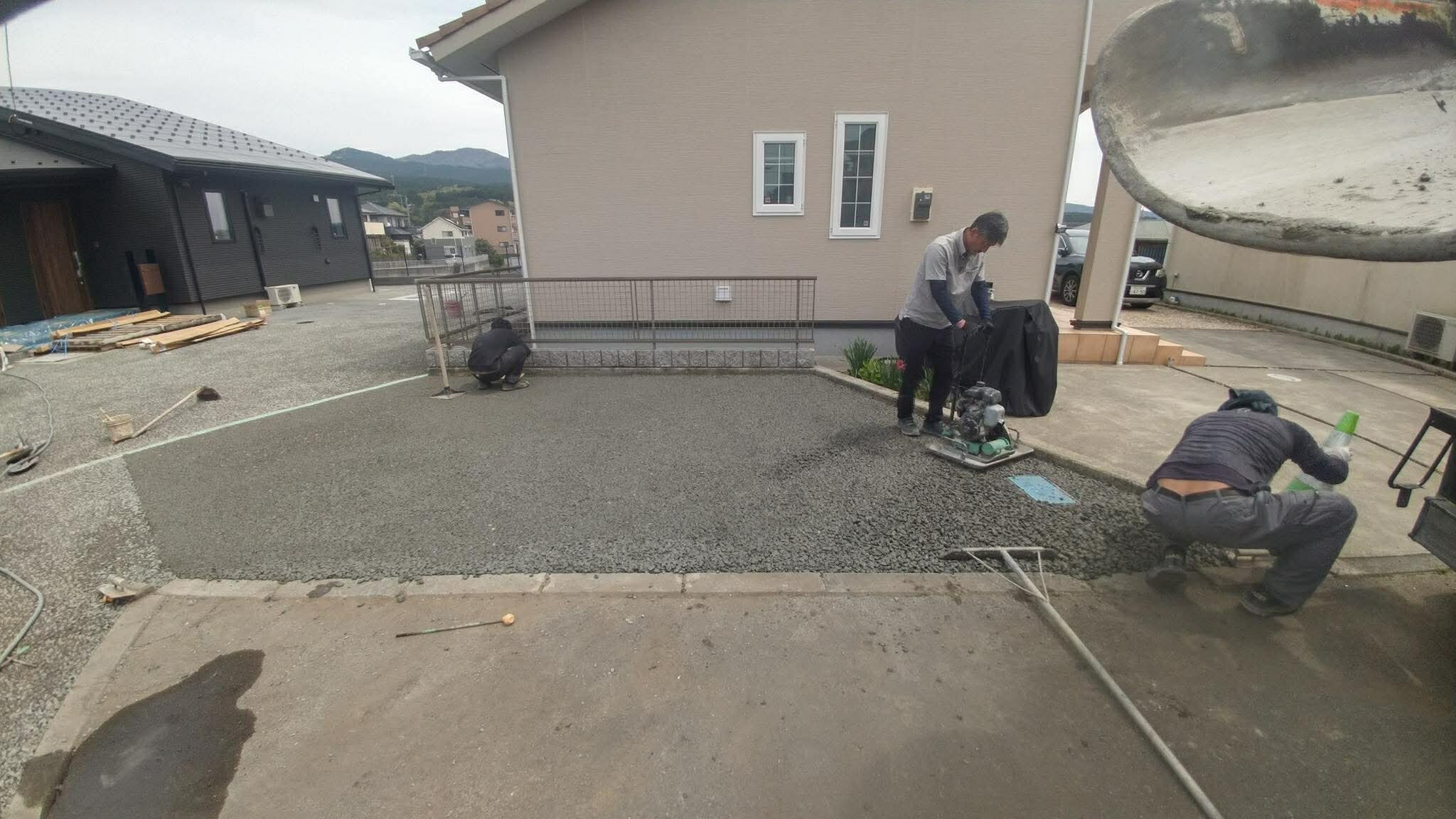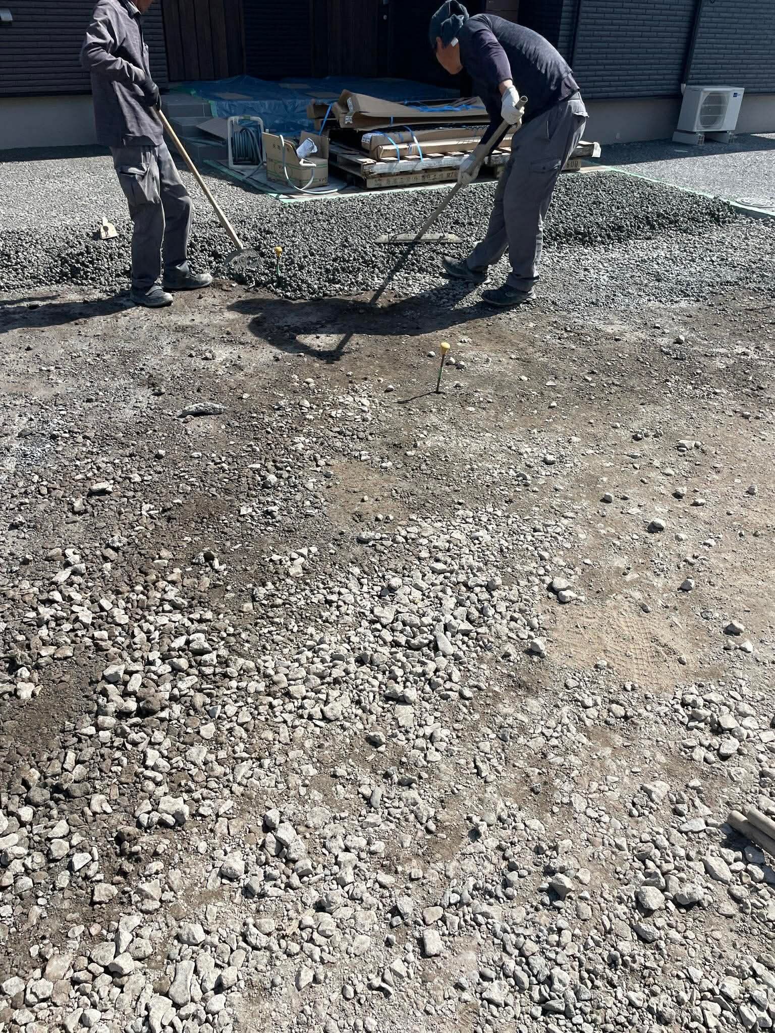 ゴツゴツしたつぶつぶを敷き詰めるだけで排水性の土間コン™︎が完成します