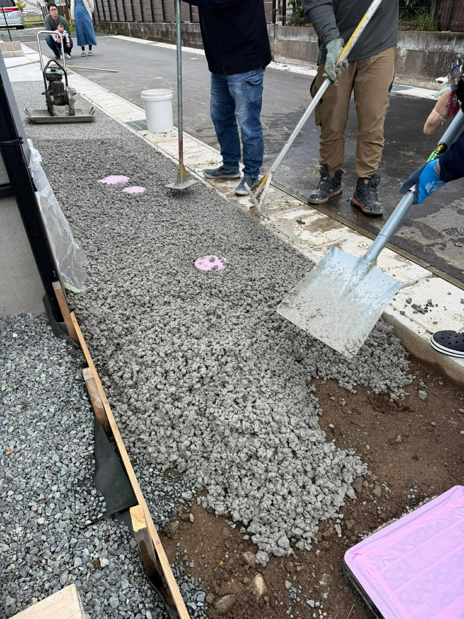 熟練の職員がピッタリ現場に張り付きますので初回・未経験でも安心の排水性土間コン™︎ オコシコン®︎