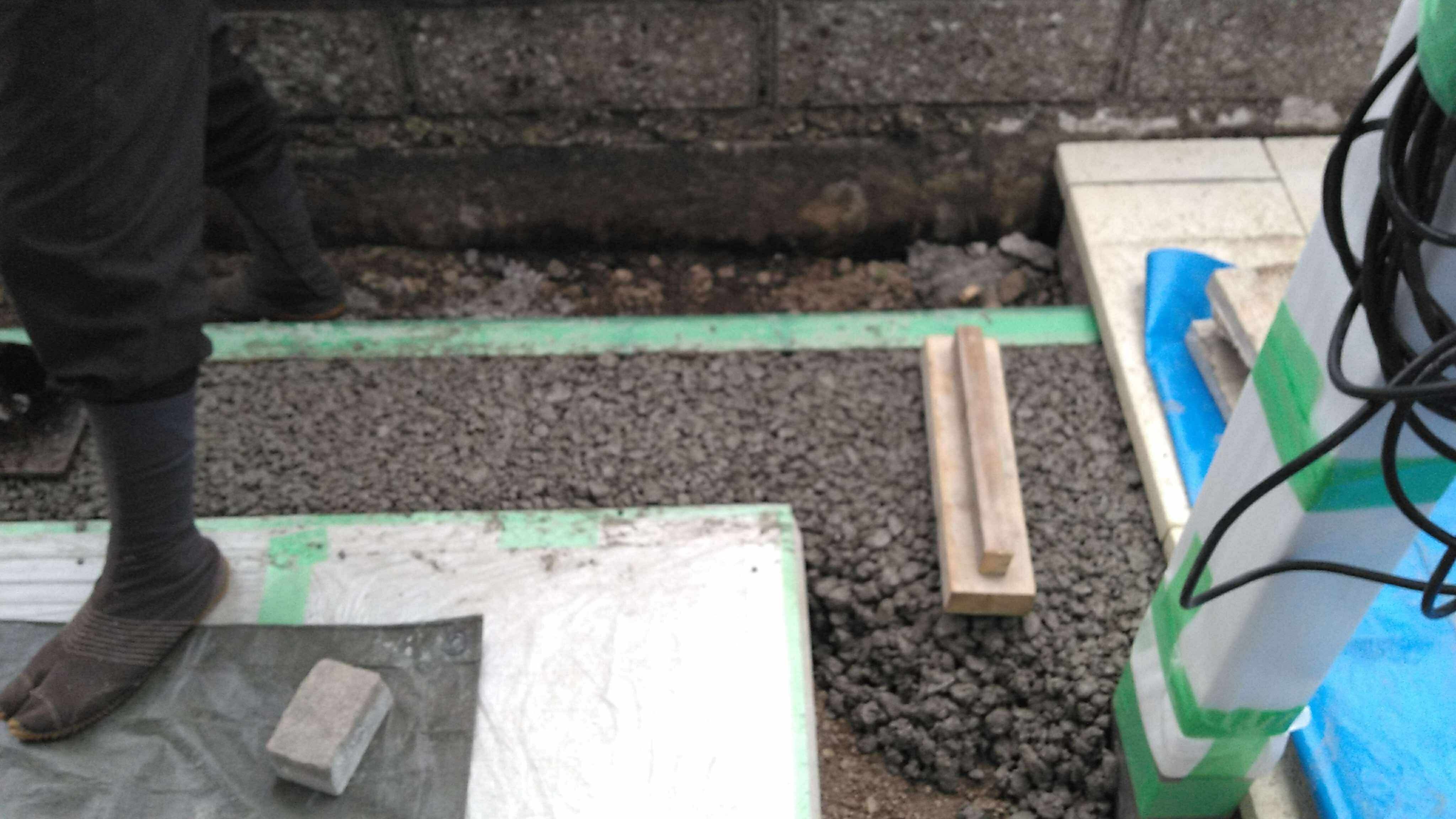 土間コンとの相性抜群ってのもオコシコンのいいところ。そこだけ水抜けて欲しいんだよね、的な箇所にオコシコンを採用する。そんな感じで喜んでいただけてます。それに、コントラストも素敵な感じですし。