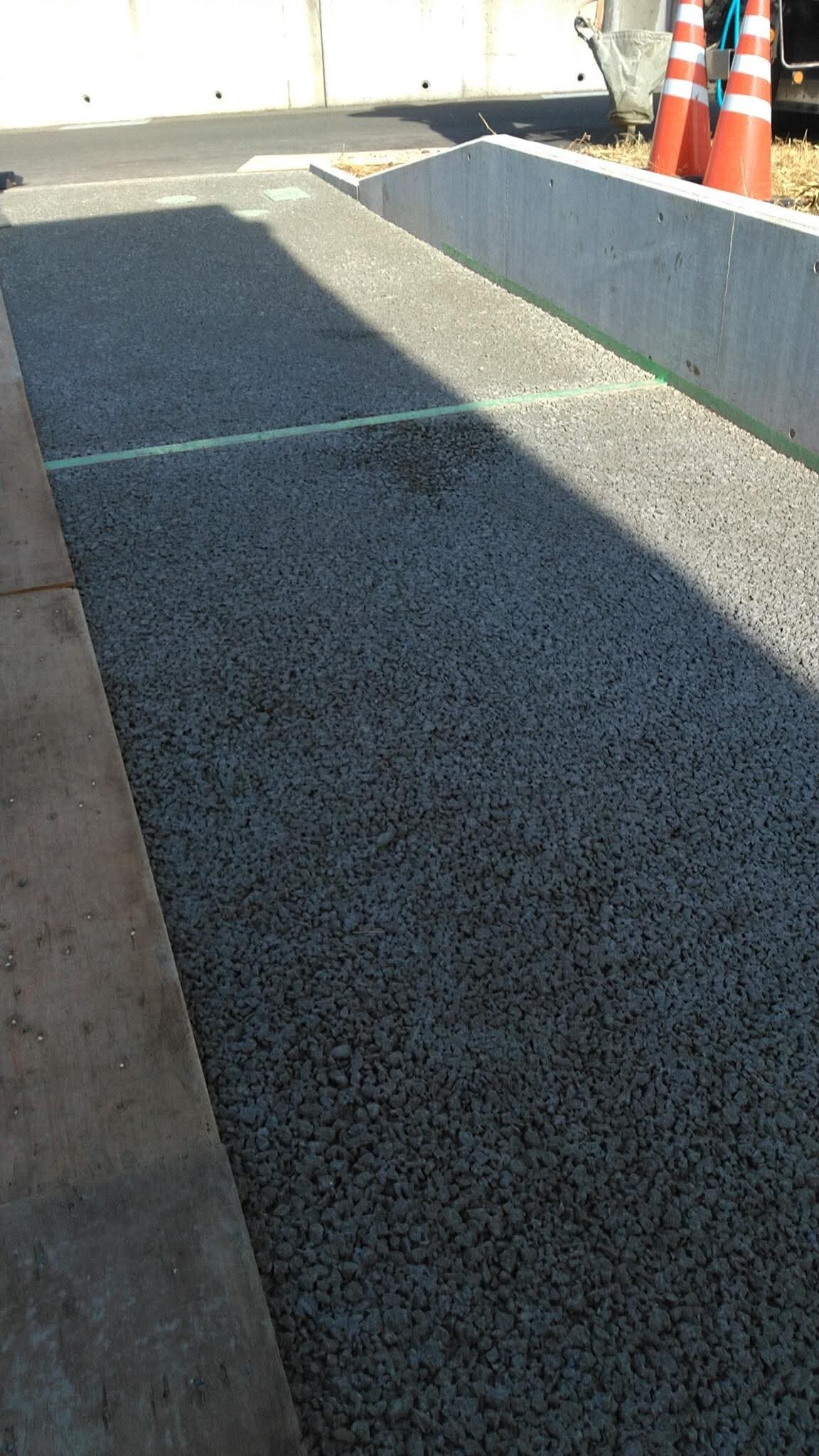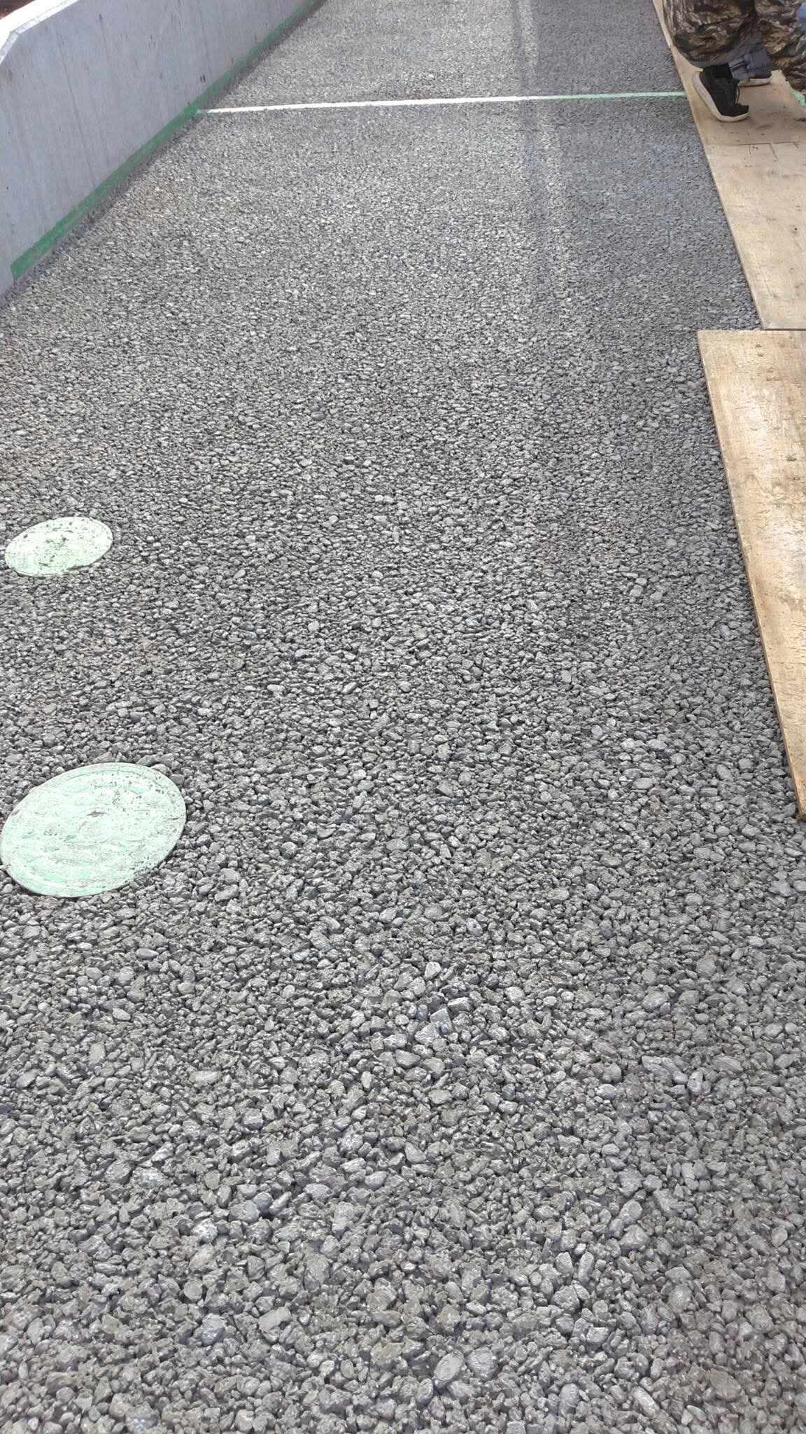 外構舗装例えば土間コン™︎の分野では真っ平はあり得ません。なぜなら、真っ平だと水たまりができるなど排水が問題となるから。一方、排水性土間コン™︎ オコシコン®︎に関しては真っ平OKなぜって表面全体が水をガブガブ吸い込むから