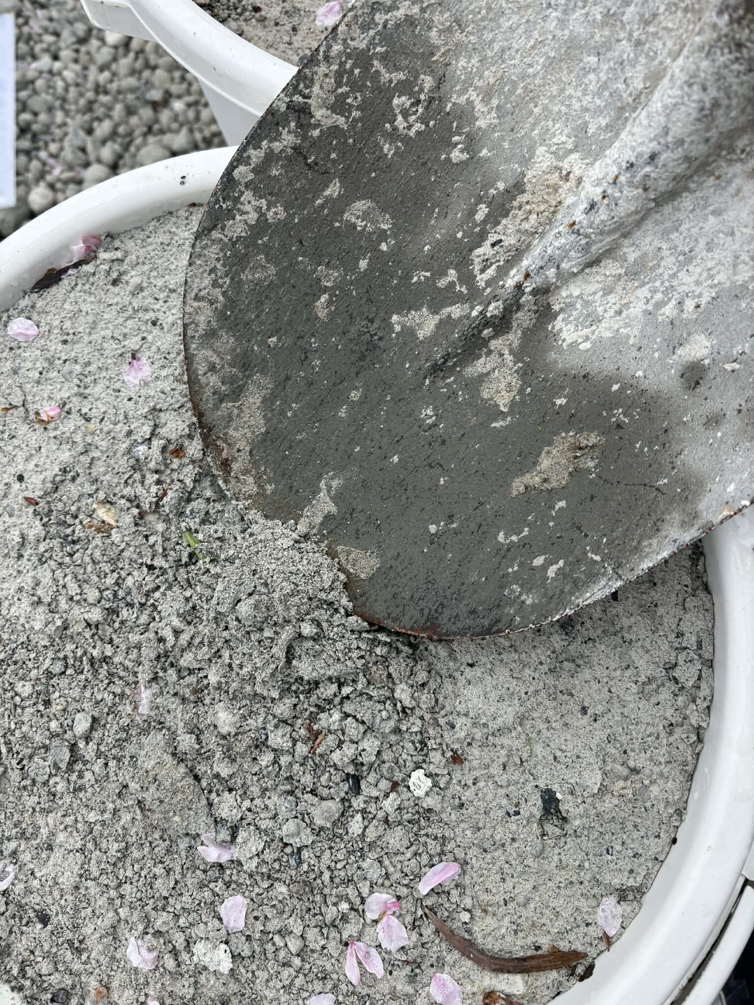 通常の土間コン™︎並みに固まってしまうと不要となって撤去したときに作業が大げさになってしまうしコンクリートの廃材が発生してしまう。だから、そこそこの強度に調整 Controlled Low-Strengthしてあるのがスコップでほじると分かり易い