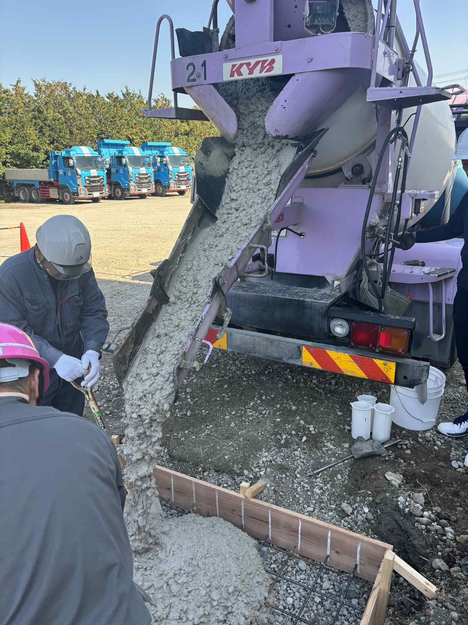 後編は打設をご紹介します。きっと数年後の生コン打設は今のように灰色ではなく白いのが当たり前になるんだろうな。そんな最先端をいくカーボンネガティブ生コン打設のご紹介