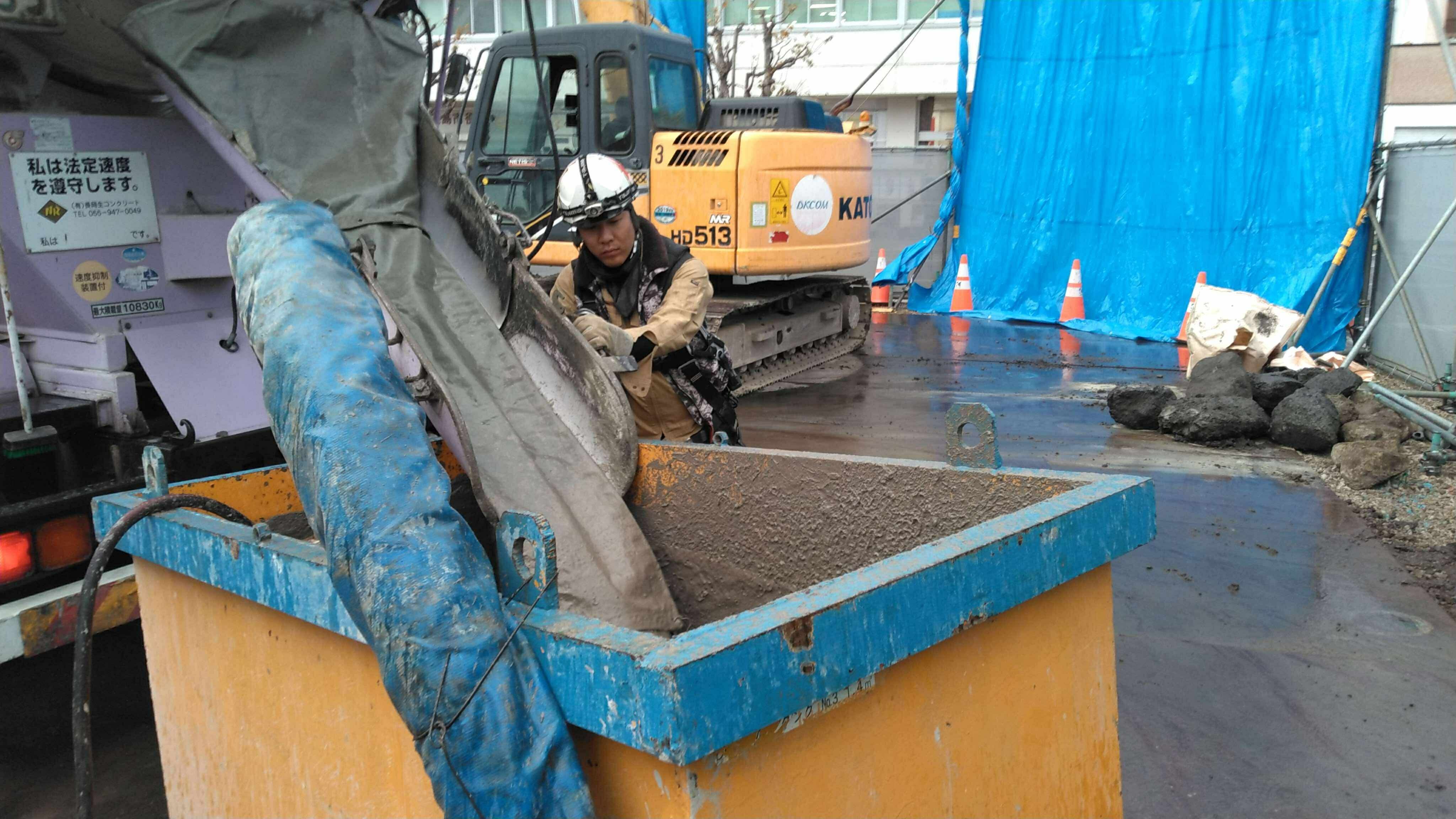 残渣式流動化処理土もCLSM(Controlled Low-Strength Material)の一に数えられる。今回は解体現場の杭撤去の際に生じる空洞充填に活躍したCLSMのご紹介