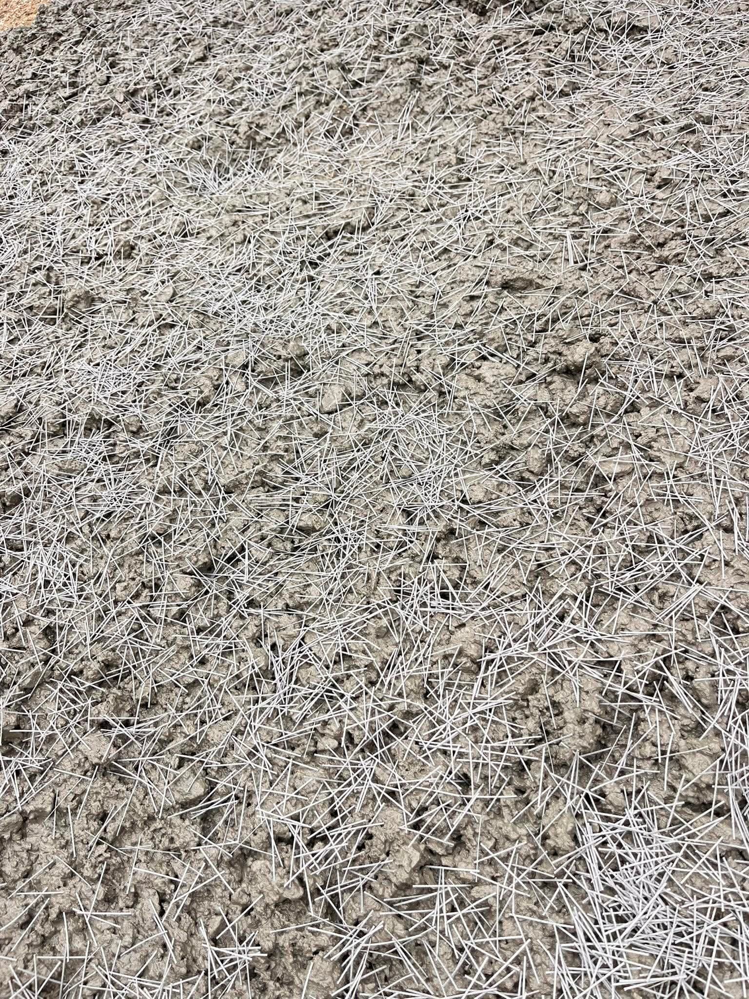 「生コンビニ」を運営する生コンポータル(株式会社 長岡生コンクリート)は土間コン™︎ひび割れ抑制材バルチップの代理店として長い歴史を数えます。生コン工場の協力がなかったとしても写真のように作業中にPP繊維バルチップを散布してタンパーで叩けば沈んで見えなくなります
