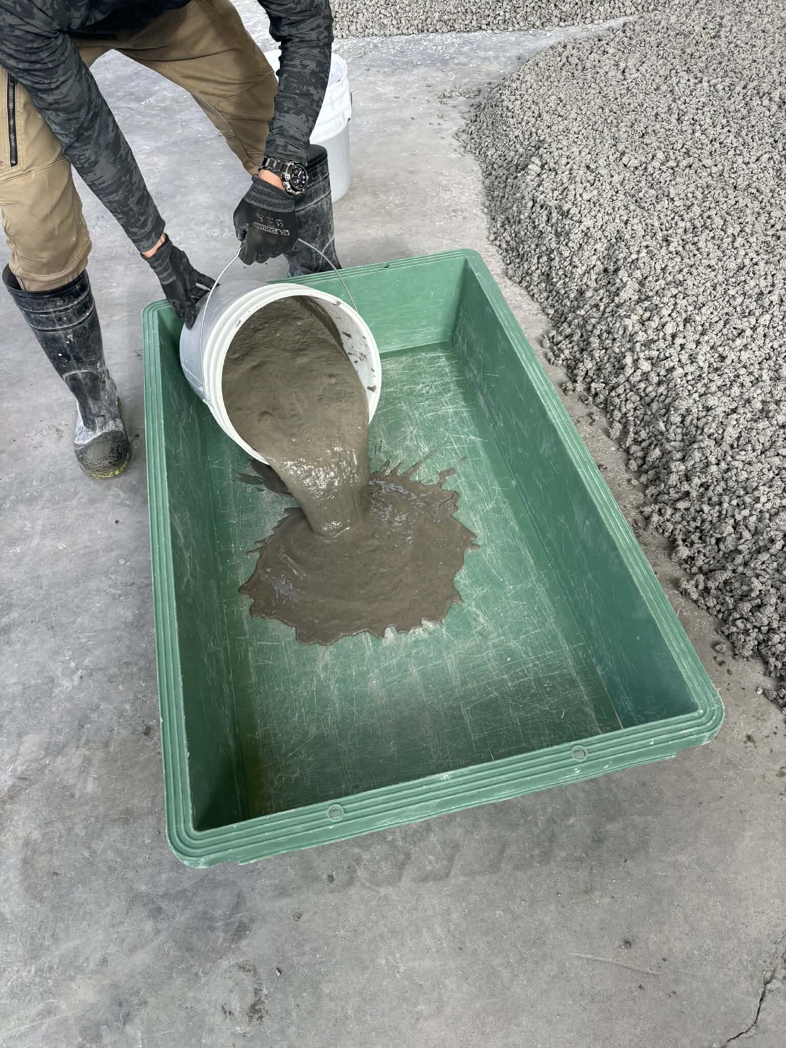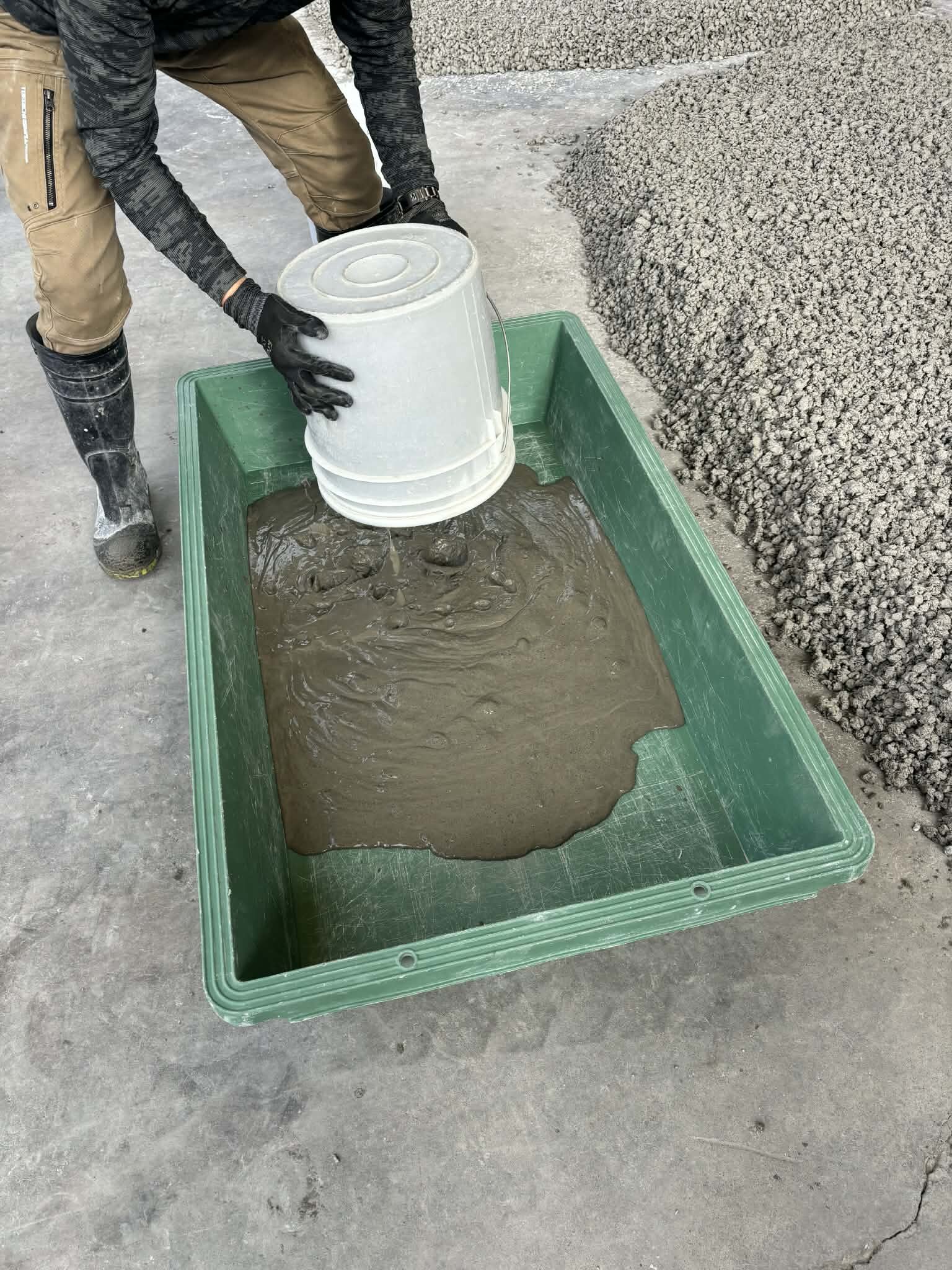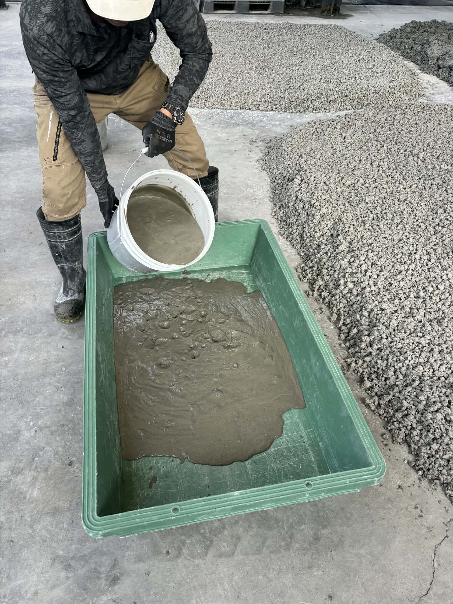 こちら、先週爆誕した生コン屋さんのエコスルは先送りモルタル代替材