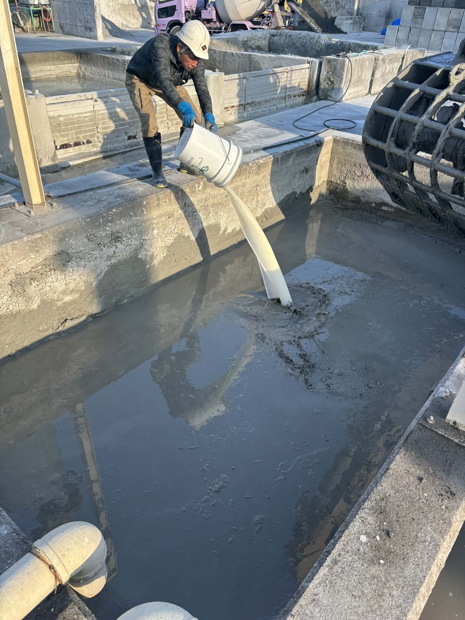 Mapecube 60投入状況。これで、スラッジの改質(アルカリ刺激材化)薬品投入は完了