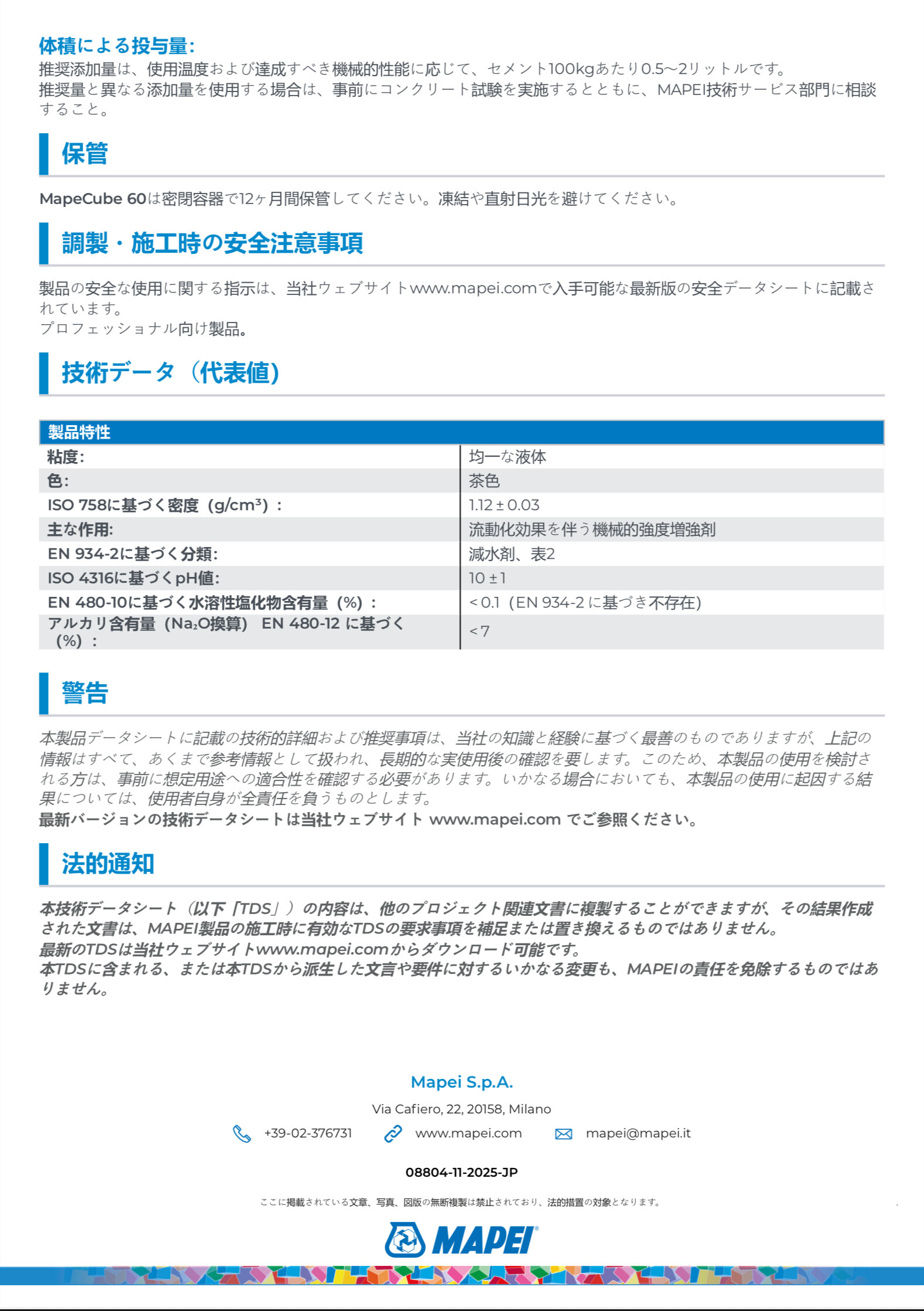 日本語のカタログも完成しいよいよスラッジ改質用混和剤Mapecubeの国内販売が世界に先駆けて始まります
