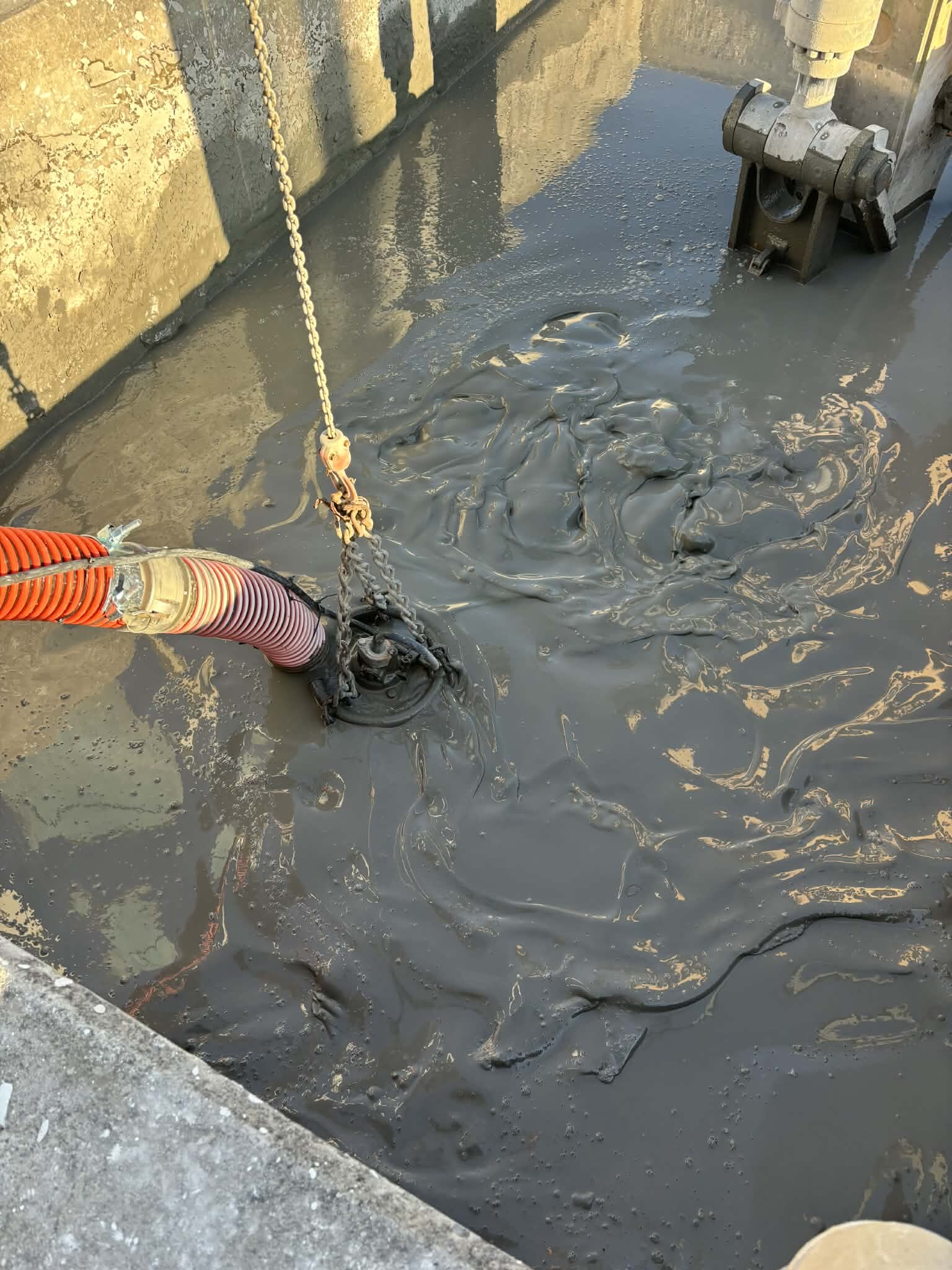 サンドポンプで荷上げ。生コン車に直接投入、後添加