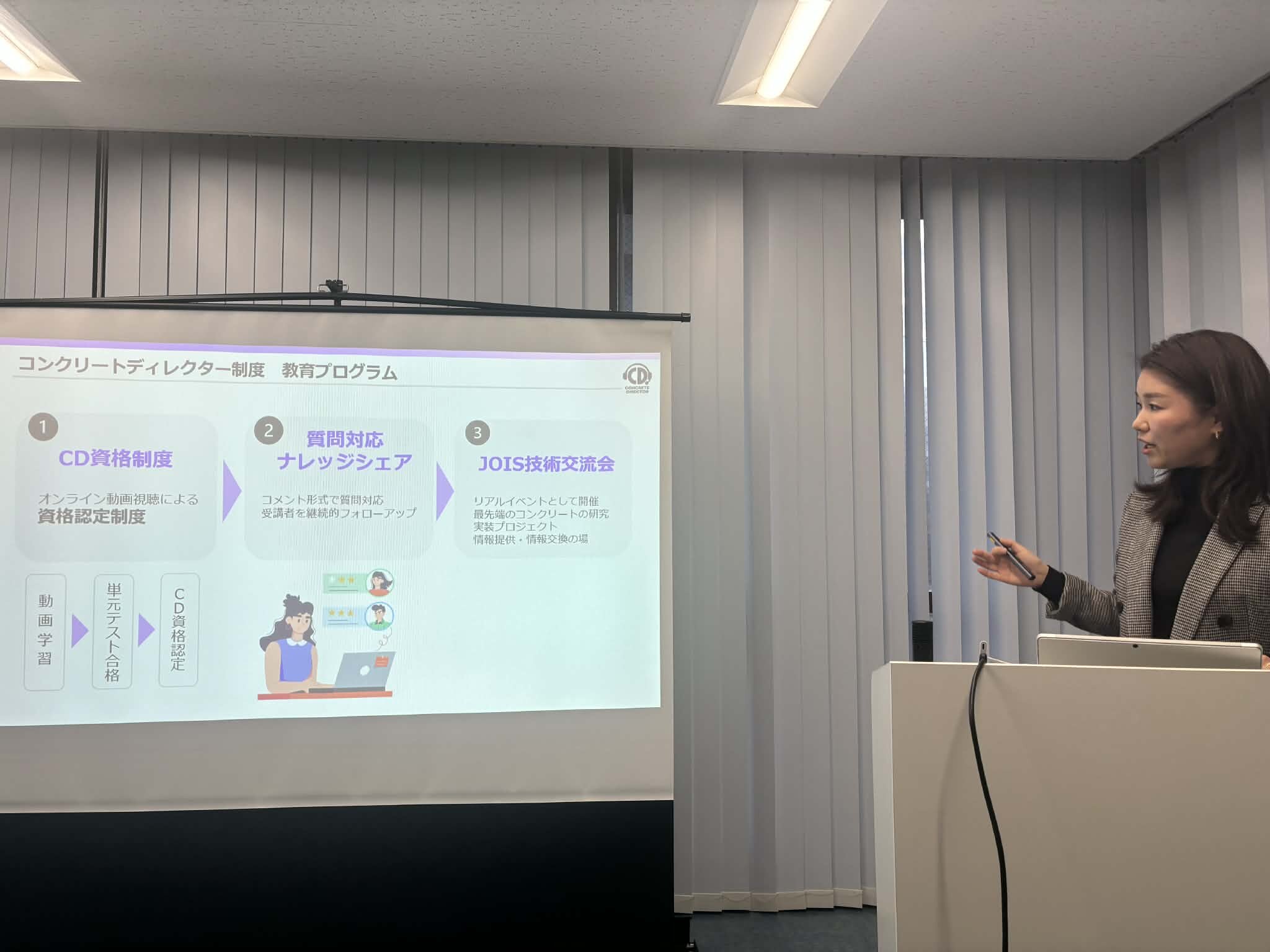 コンクリート技士・主任技士といった技術的なスキルとは一線を画しより実務にフォーカスした知識体系の習得がポイント。さらに、一回受講してそれでおしまいではなく、その後会員に配信されるアプリによる会員相互の継続学習(ナレッジシェア)やプロジェクト参加や研修旅行/合宿などリアル交流イベント(JOIS)など豊富なコンテンツがCD協会の特徴となっています。生コン実務家が「もう1人で悩む必要がない」そんなプラットフォームとなっている