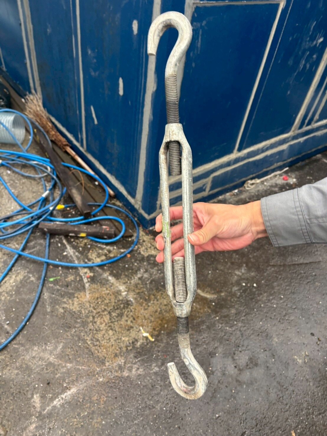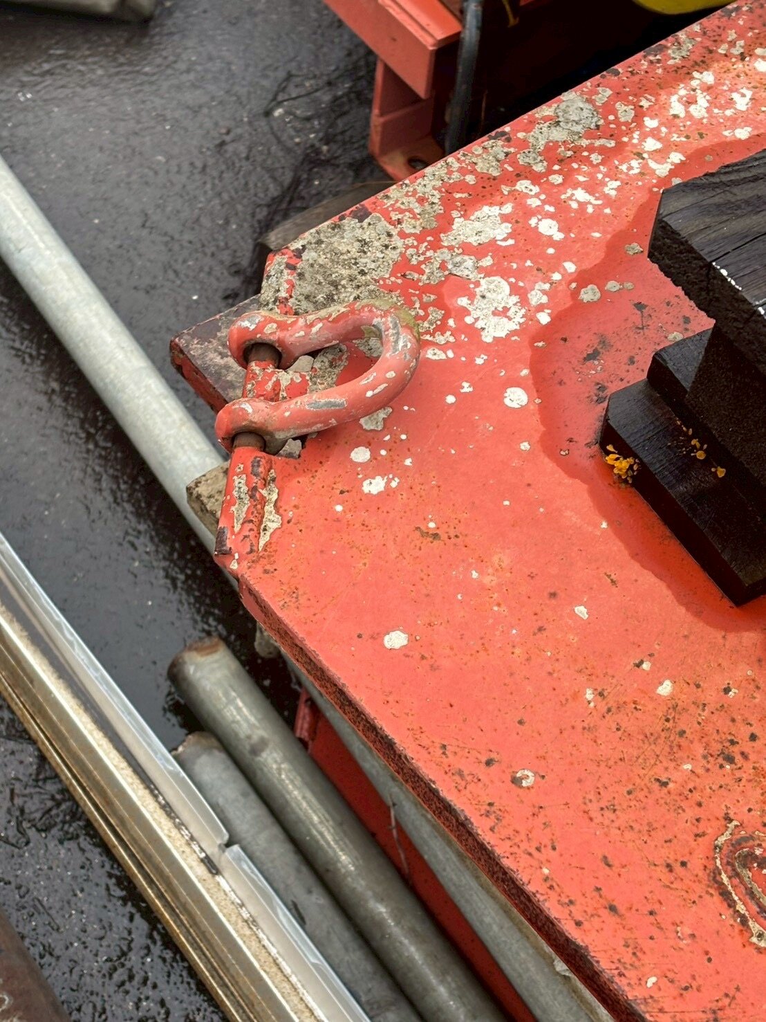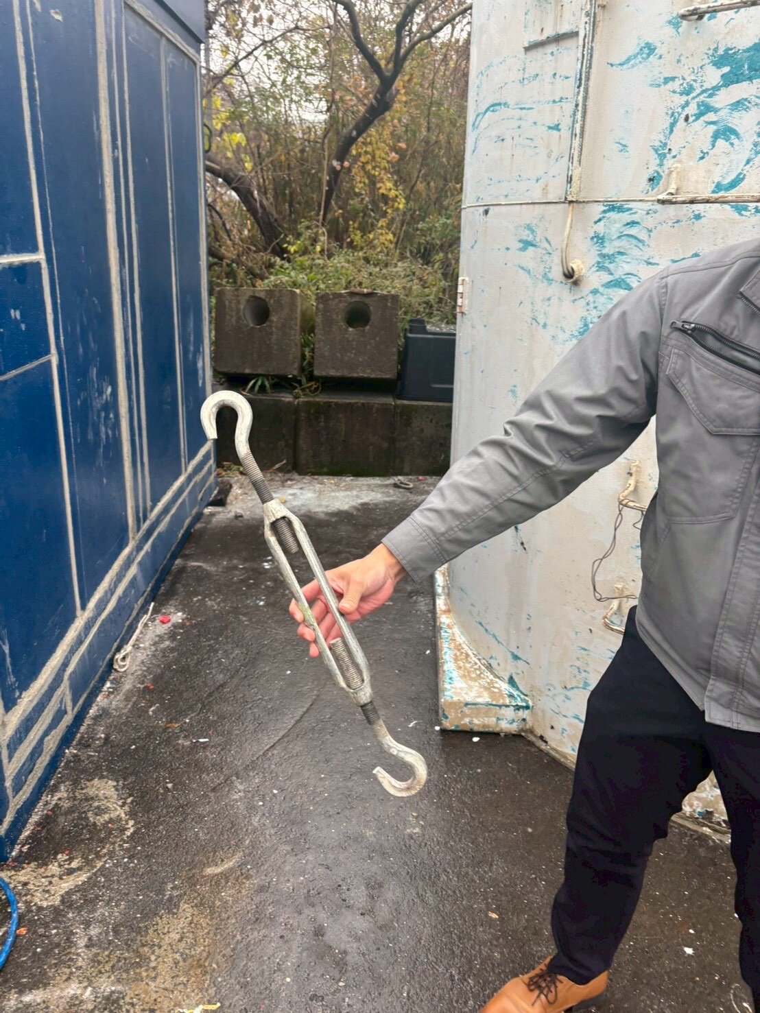 こうしたバックルを用いて敷き鉄板と移動式サイロを固定するんだそうです。ほんとシンプル