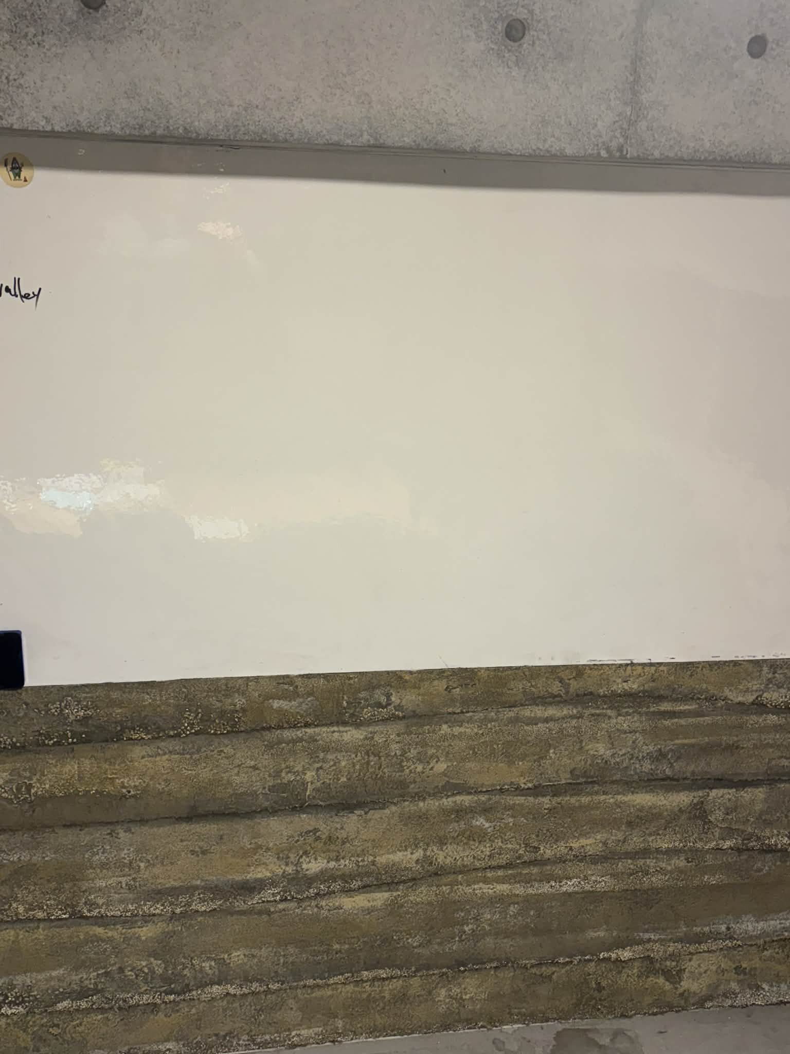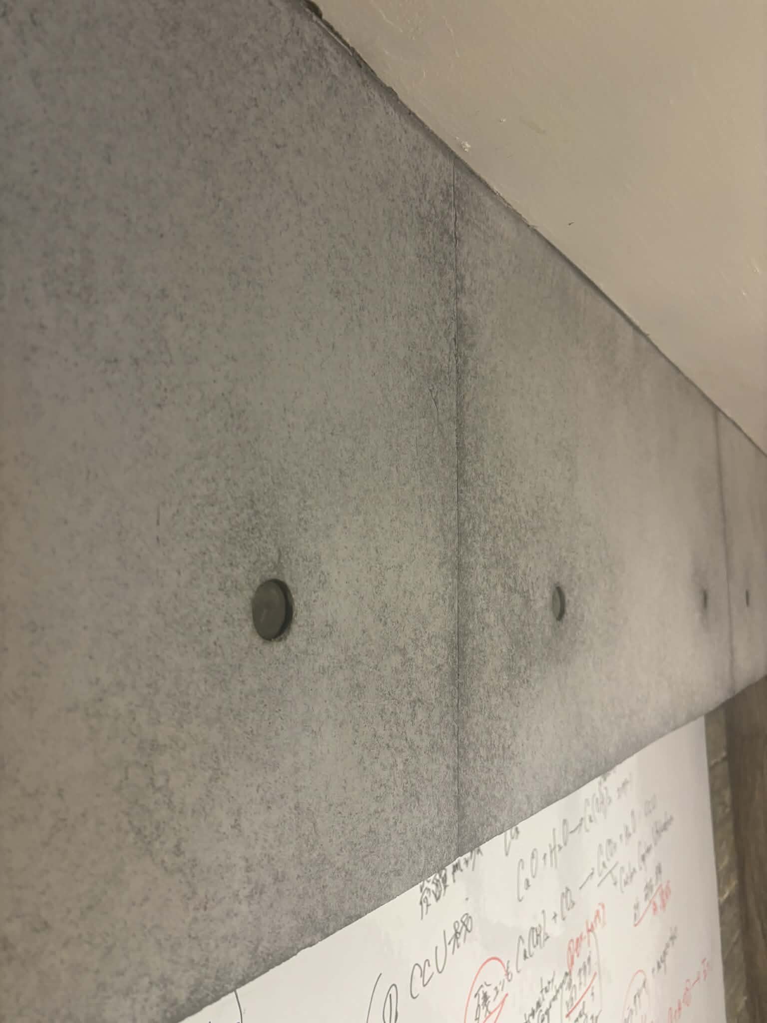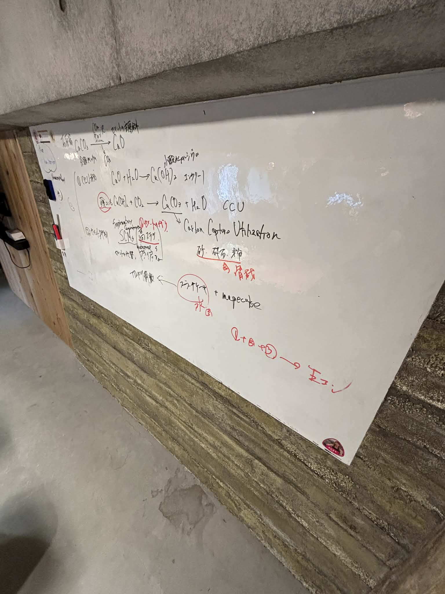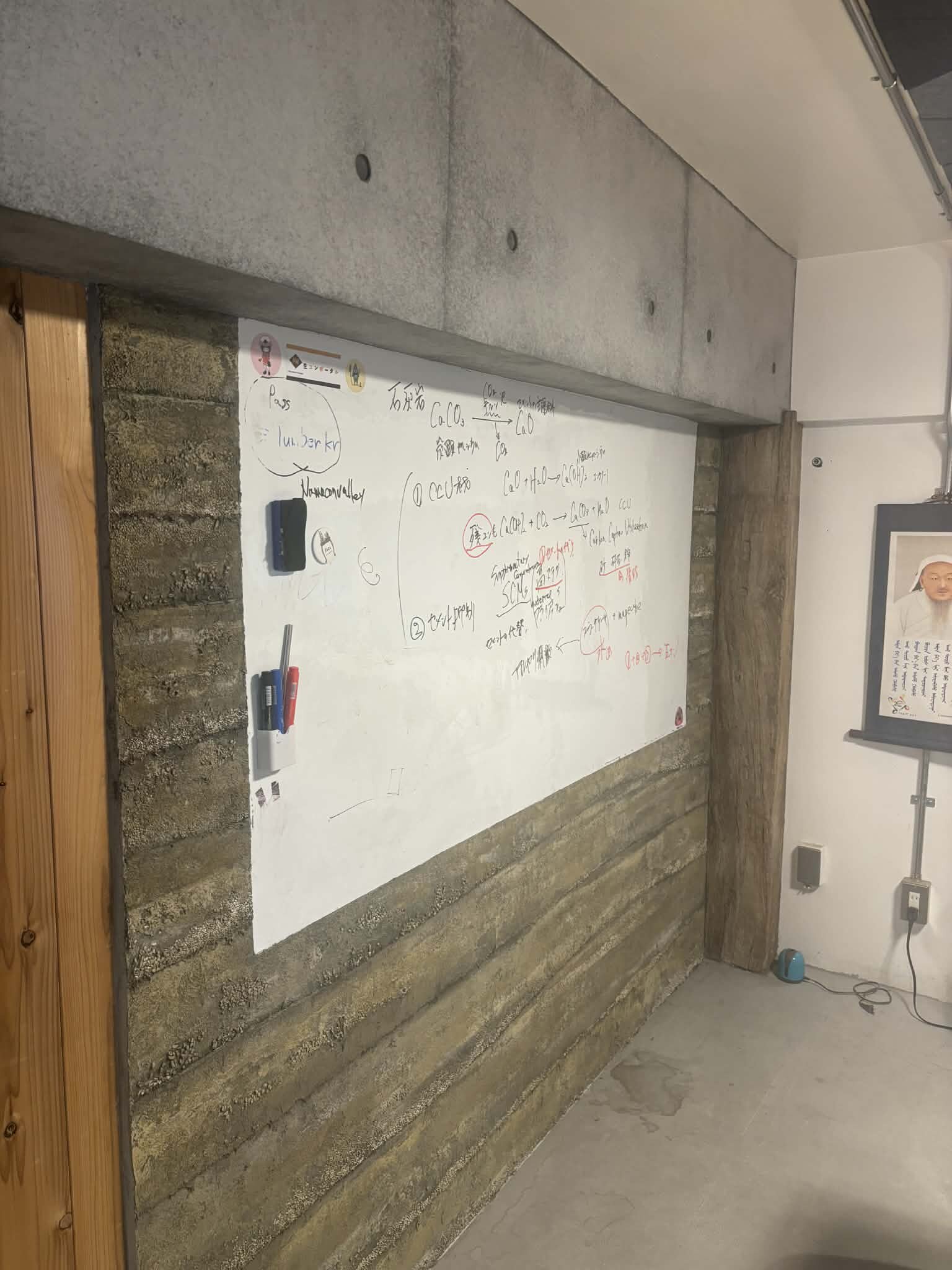 ホワイトボードの周りは版築(ラムドアース)。また、右手には擬木。こちらで開催される研修では常に目の端にコンクリートアートが入り込んできます