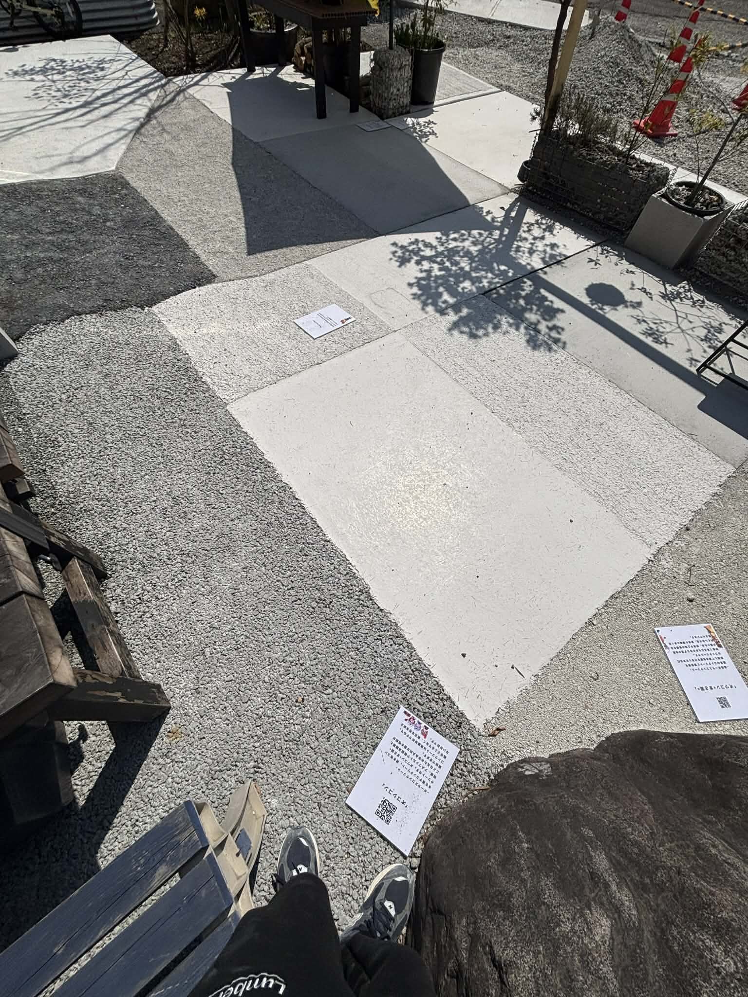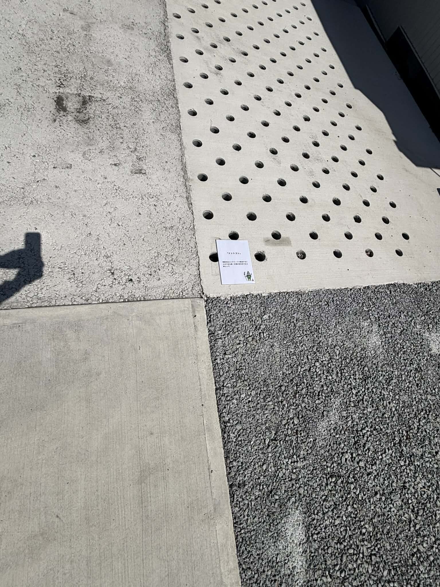 白い土間コン™︎にはアルカリ刺激剤やCCU(Carbon Capture Utilization)材がふんだんに採用されているので環境負荷(CO2発生)がマイナスです。なお、夏場には路面温度ひいては環境温度の違いも肌で感じていただけます