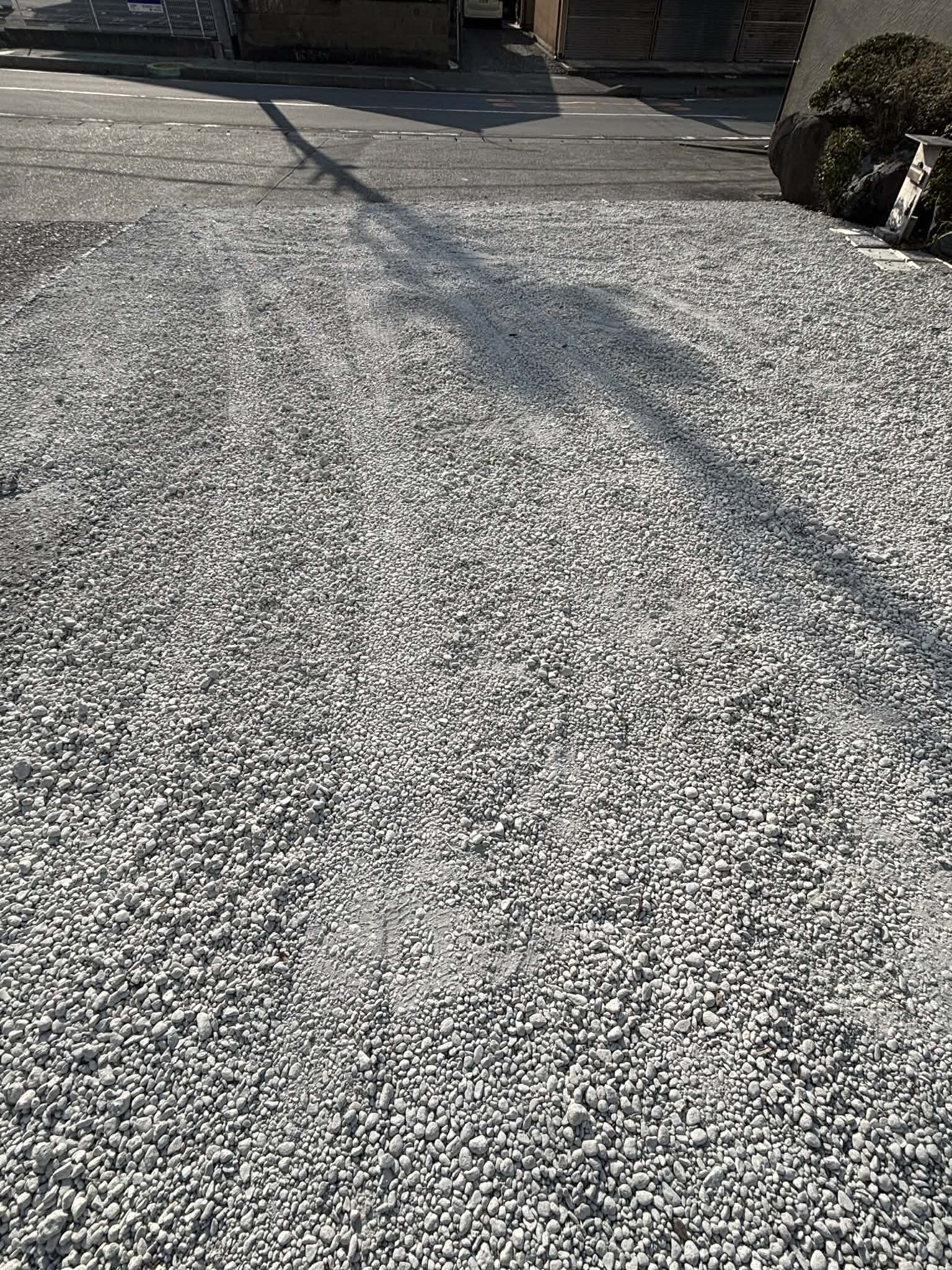 イタリアの砂利道風の砕石敷きはザンコン™︎骨材。コンクリート産業の副産物残コンを由来としておりCO2を固定、環境負荷ゼロなどの特徴を有しておりCCU材としてコンクリート用骨材にも採用されています。砕石の散逸防止に採用されているのは今話題のグラベルフィックス