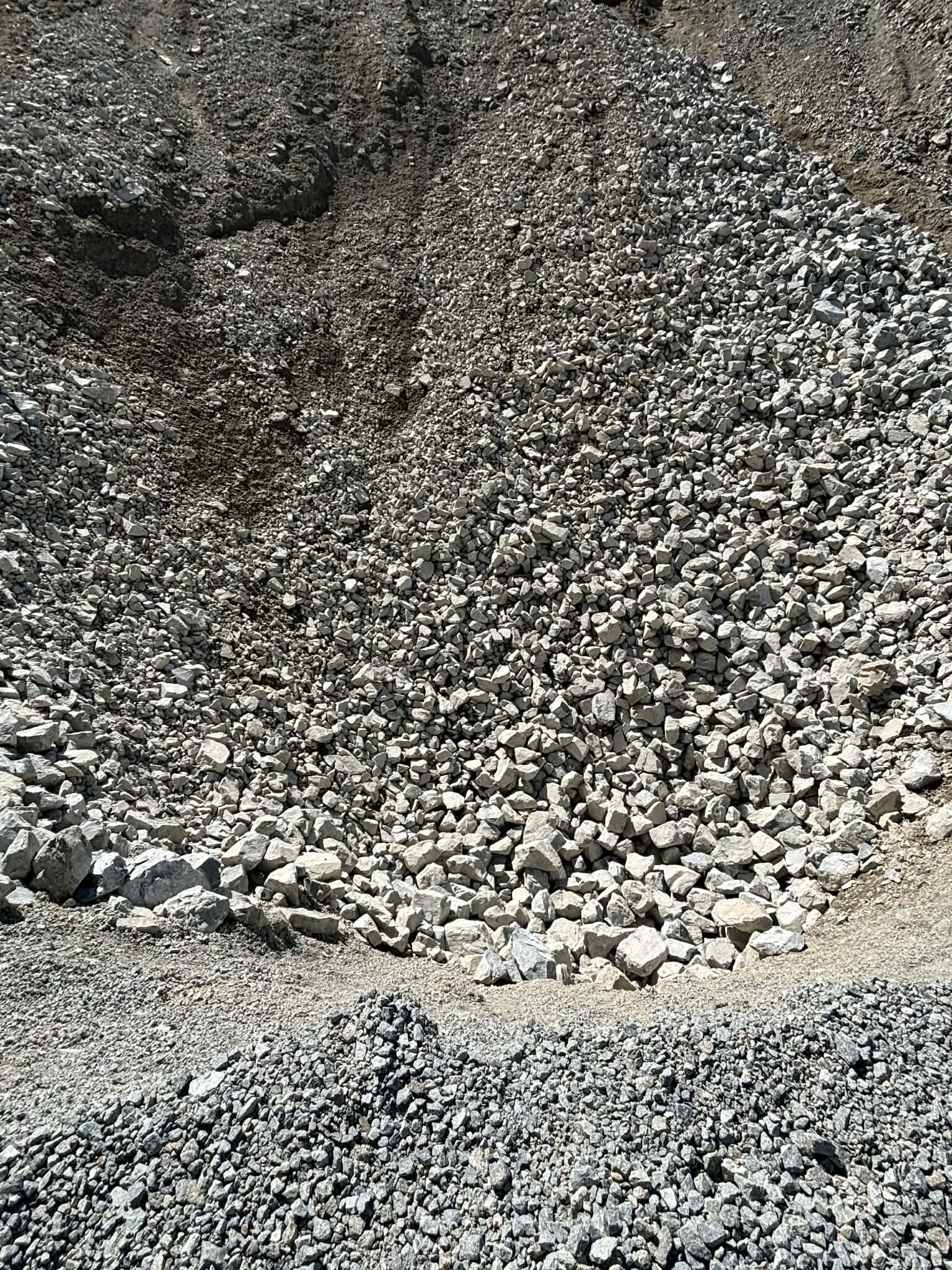 ベンチカット工法で自然の山をスライスして岩石を採取して破砕し、そのまま下に岩塊を落として行く過程で粒を小さくしていく。まるで、山を砕石製造プラントにするようなイメージで生コンクリート用骨材は製造されています。