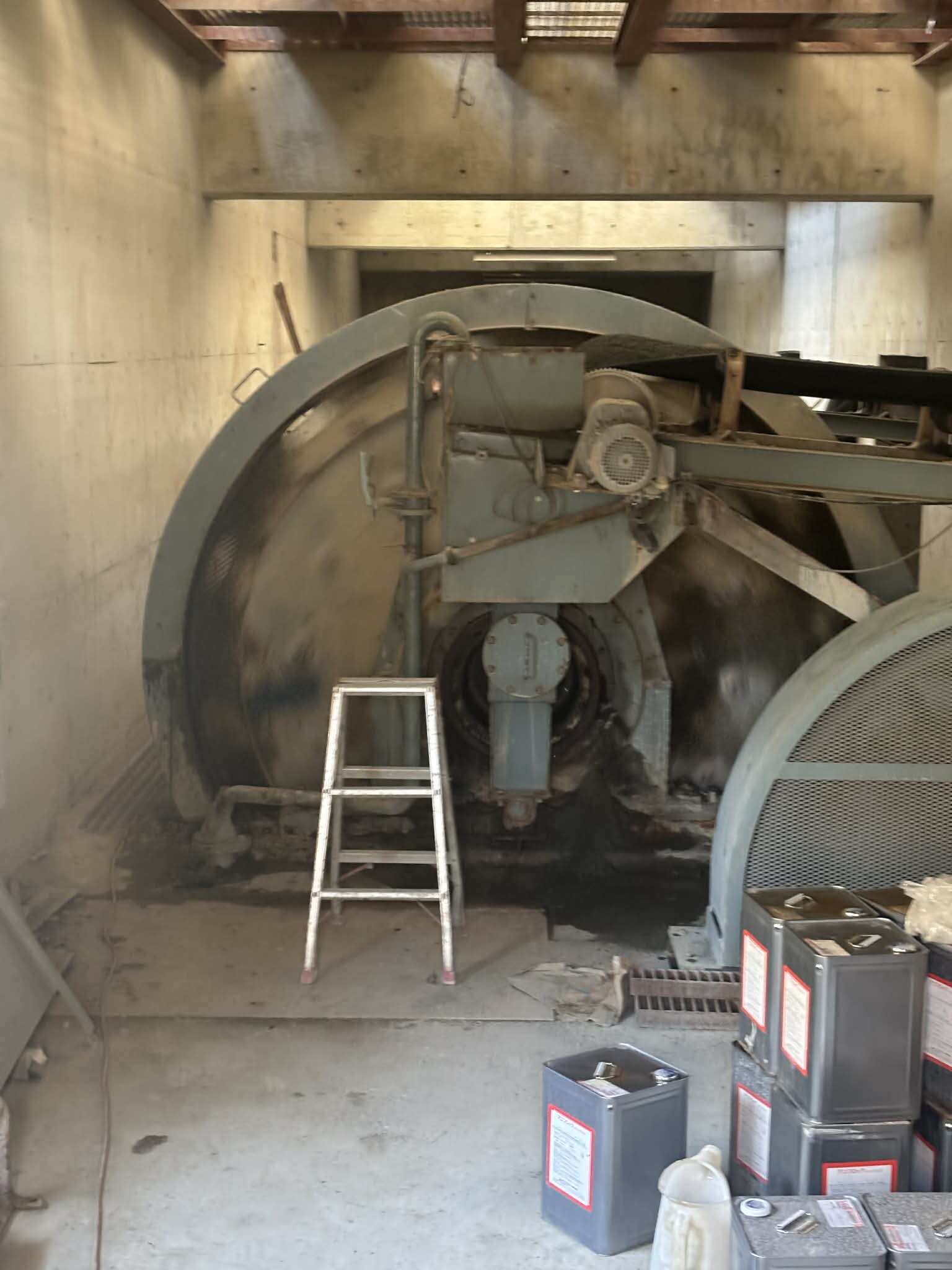 製品は水洗浄され汚泥はこちらのシックナーで沈殿貯留されています