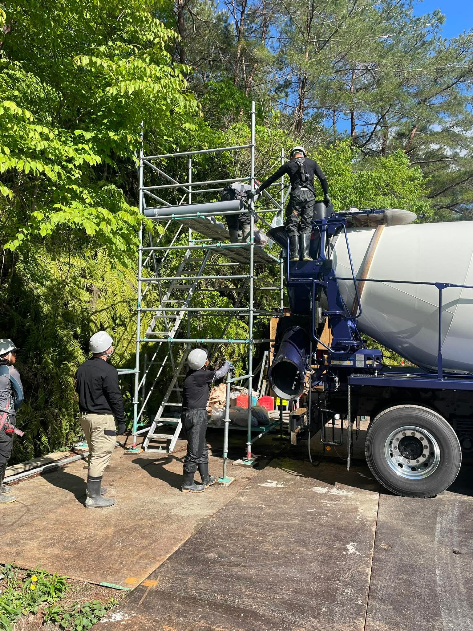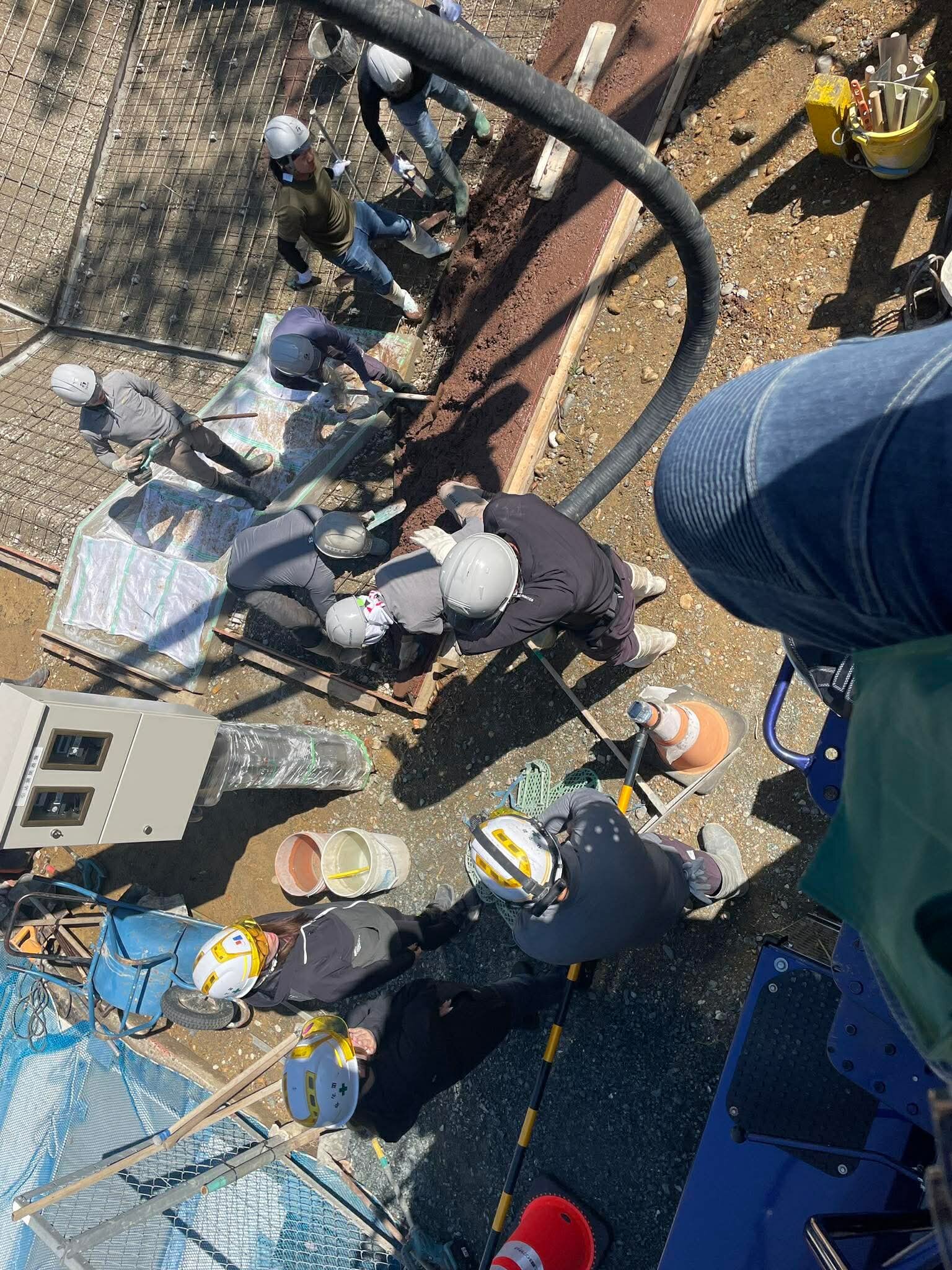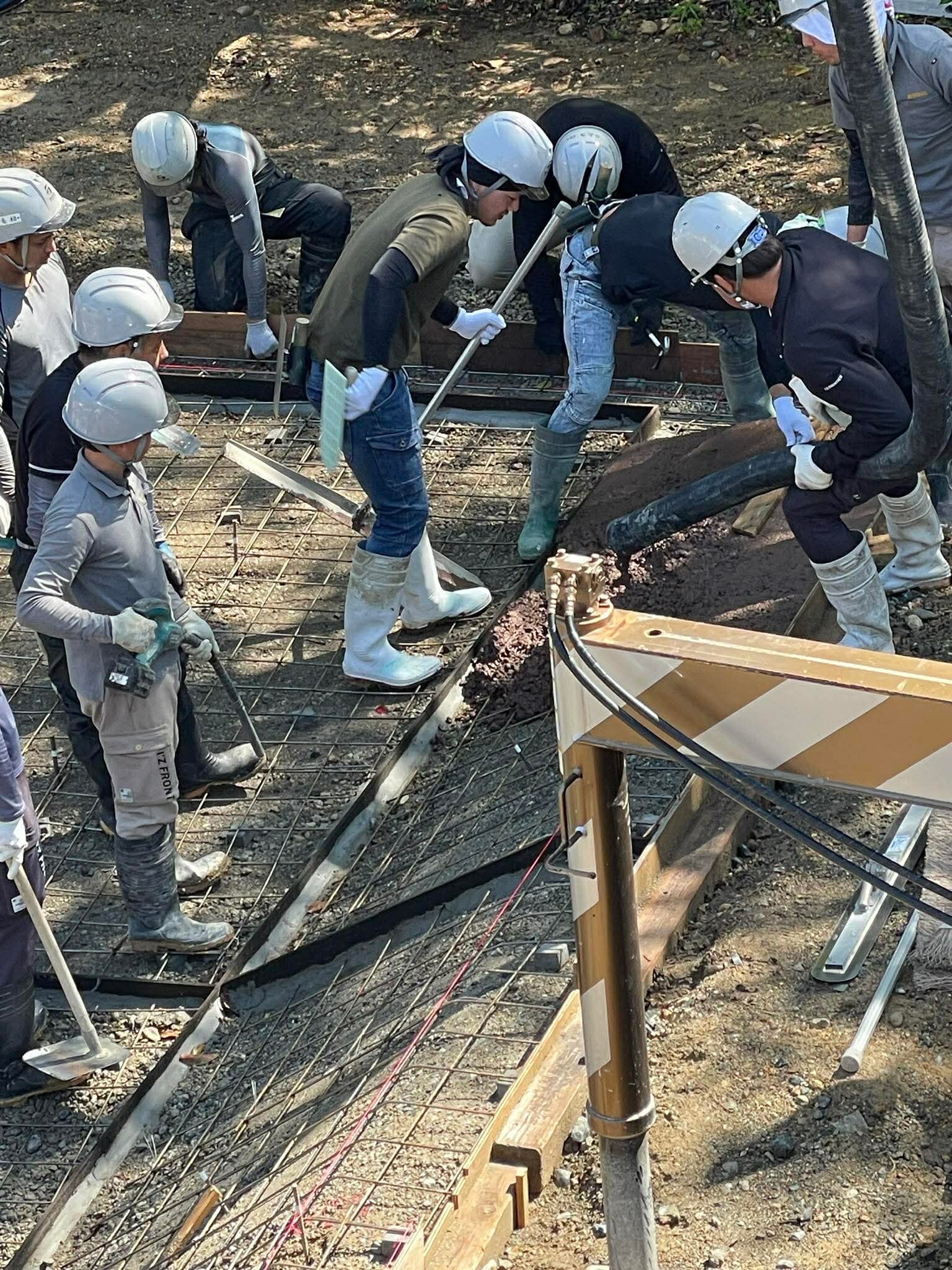 現地で【ナゲコン】で色のついたコンクリートを提供。もちろん、色のオーダーメイドも対応中