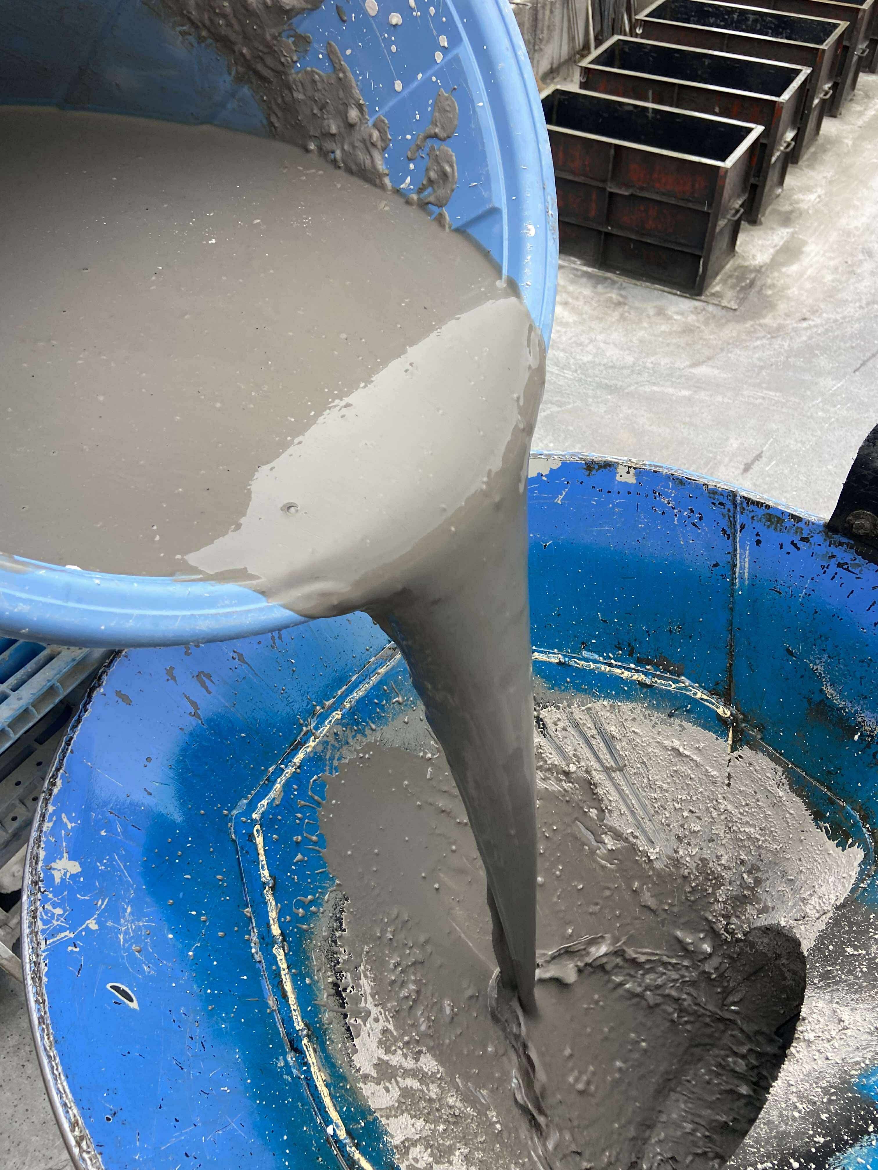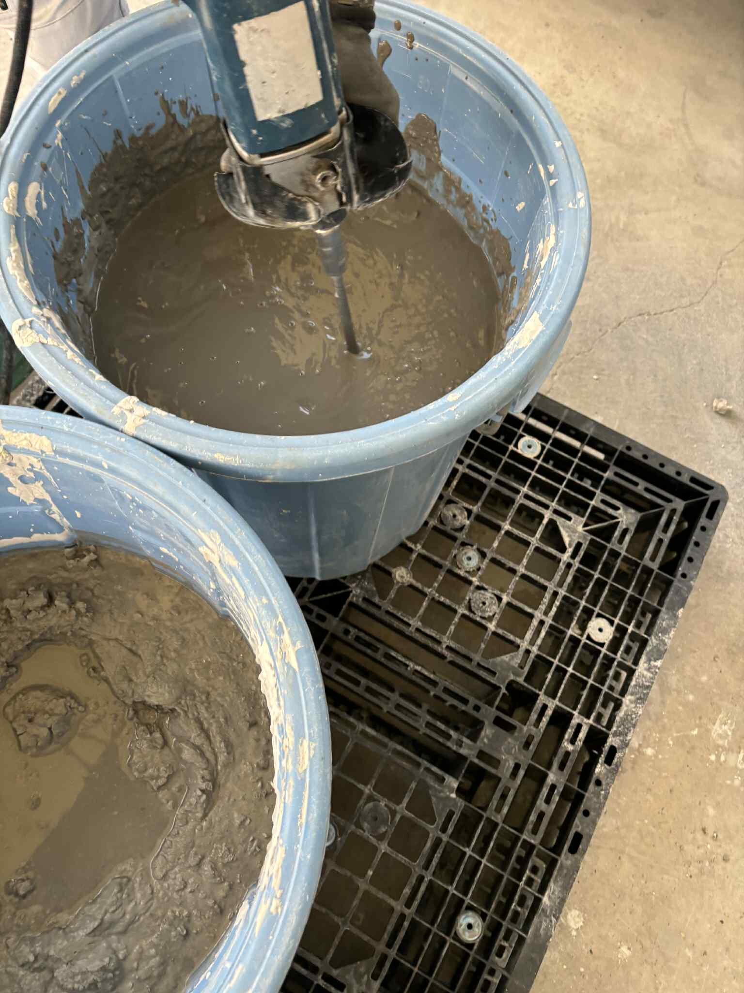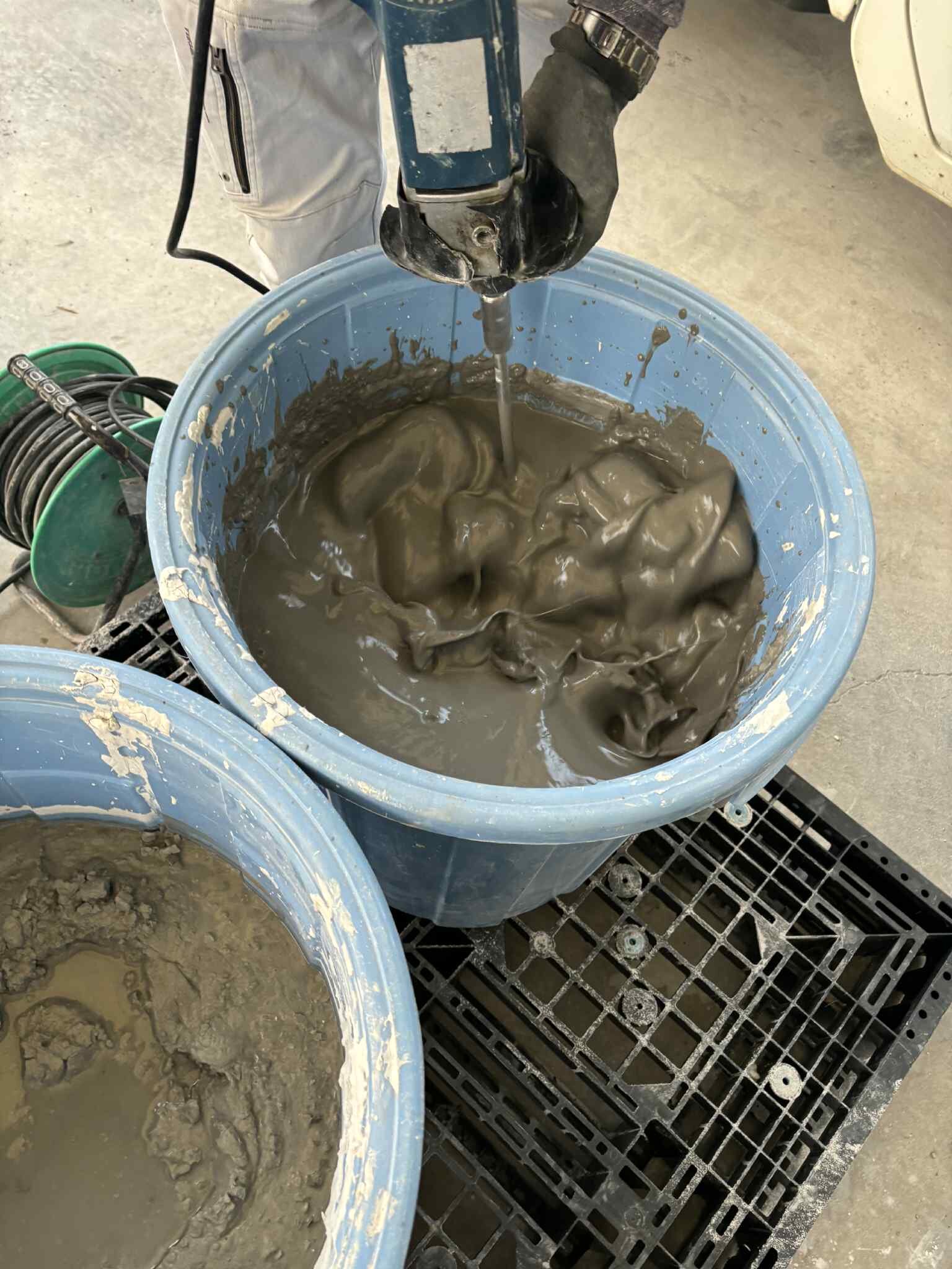 各地の生コン工場にとってザンコン™︎最後の問題と言って良い生コンスラッジの改質と混和材料としての運用、あるいはスラッジ固形分率6%(あるいは3%)としてのJIS生コンへの適用検討が始まっています。こちらは、手作業で生コンスラッジを流動化処理(改質)している様子。年内には自動化を目標としています