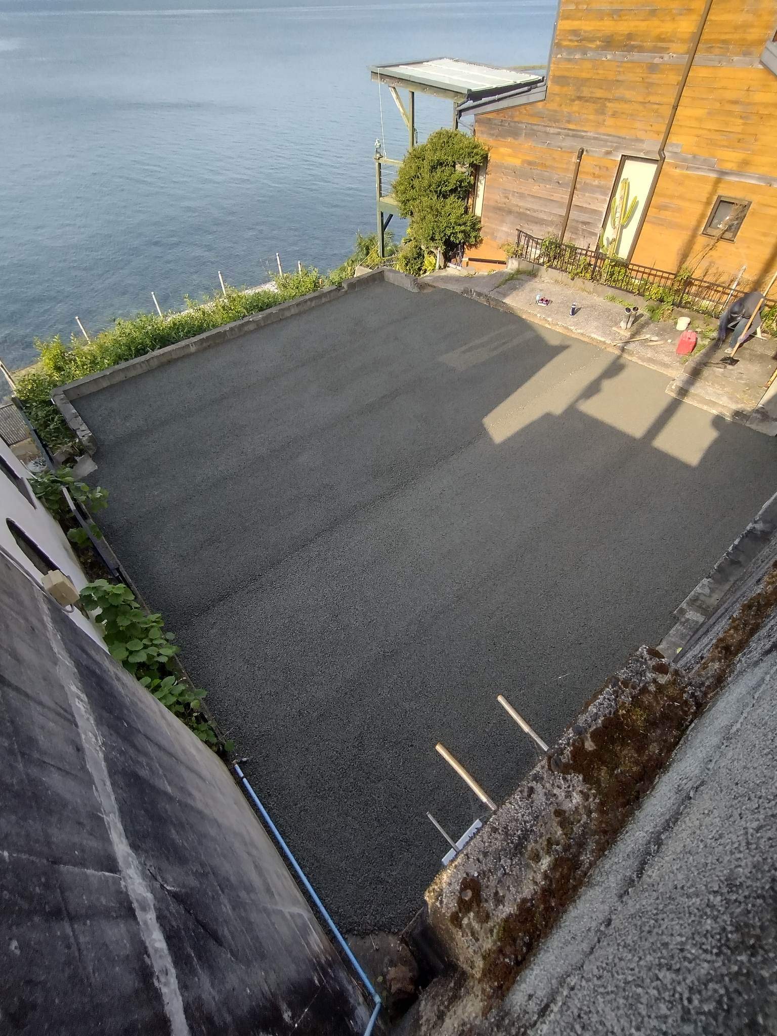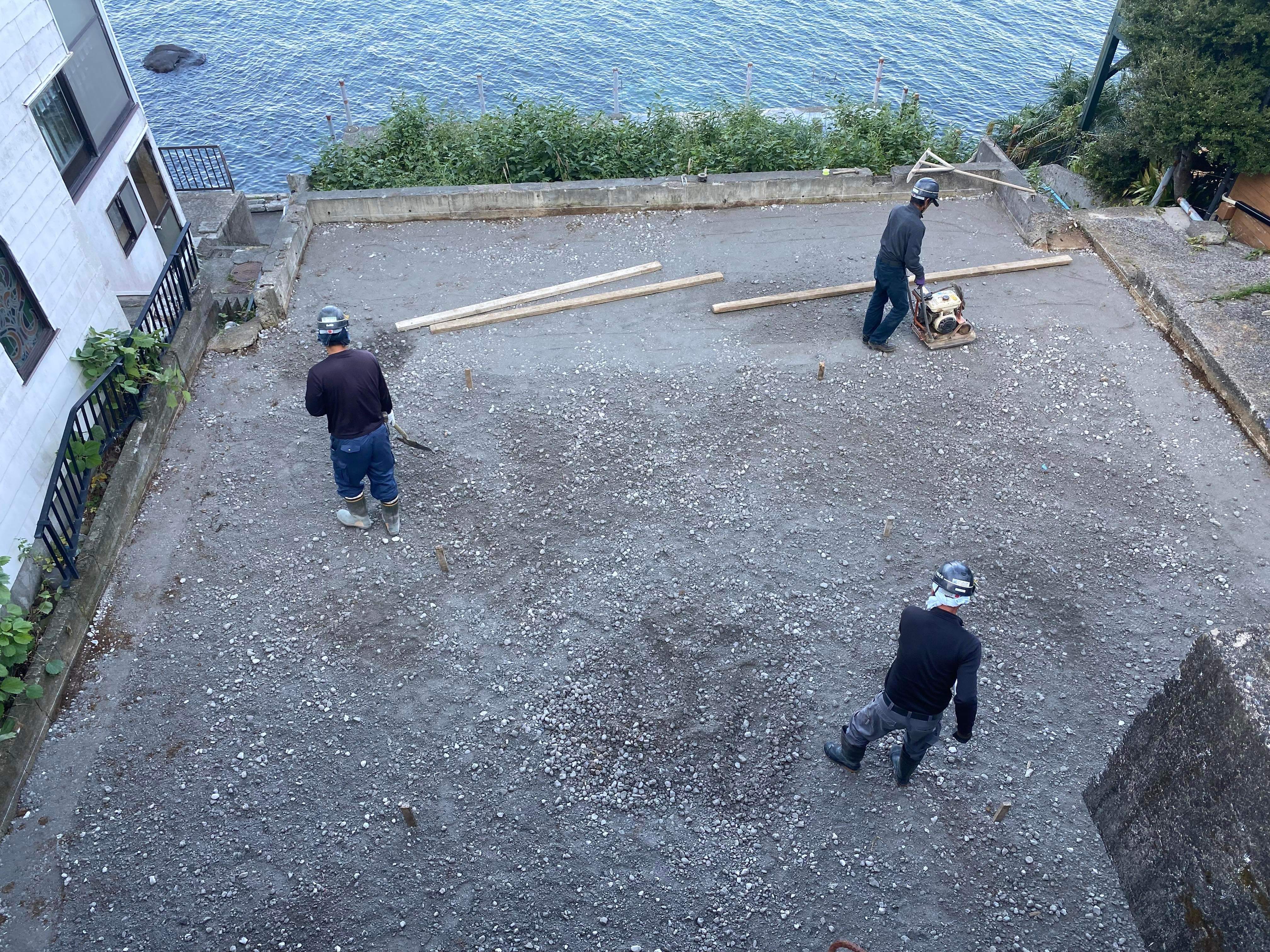 静岡県沼津市。透水性コンクリートの施工現場。透水性コンクリートと一口に言っても種類はいくつかある。生コンポータルが生み出した透水性コンクリートは大きく分けて①ポーラスコンクリート(オコシコン/ドライテック/ドライウェイ)②造粒ポーラスコンクリート(オワコン)だ。「オワコンをおすすめする理由」