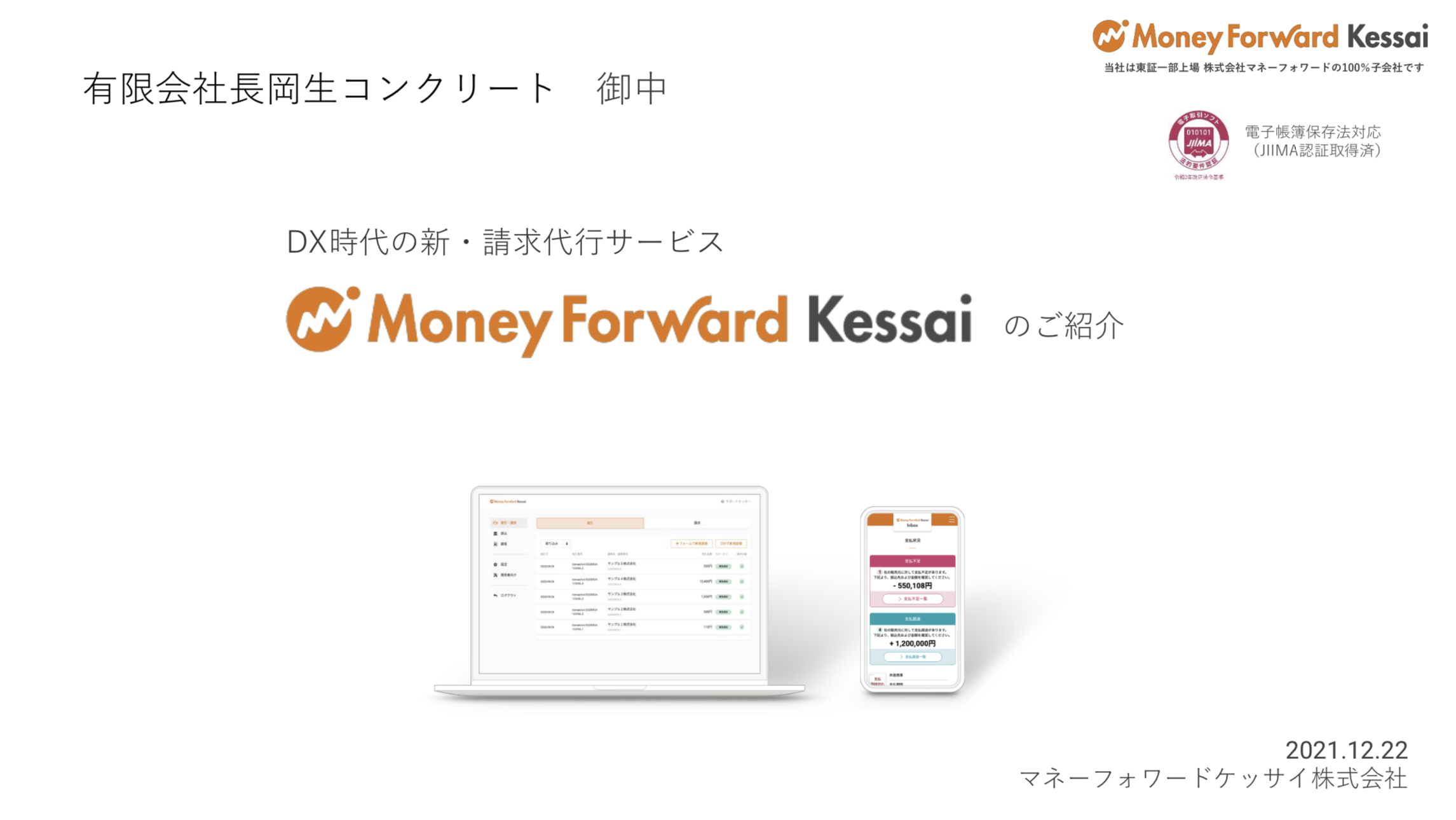 生コンポータルではこの程マネーフォワードケッサイ株式会社と契約が完了。