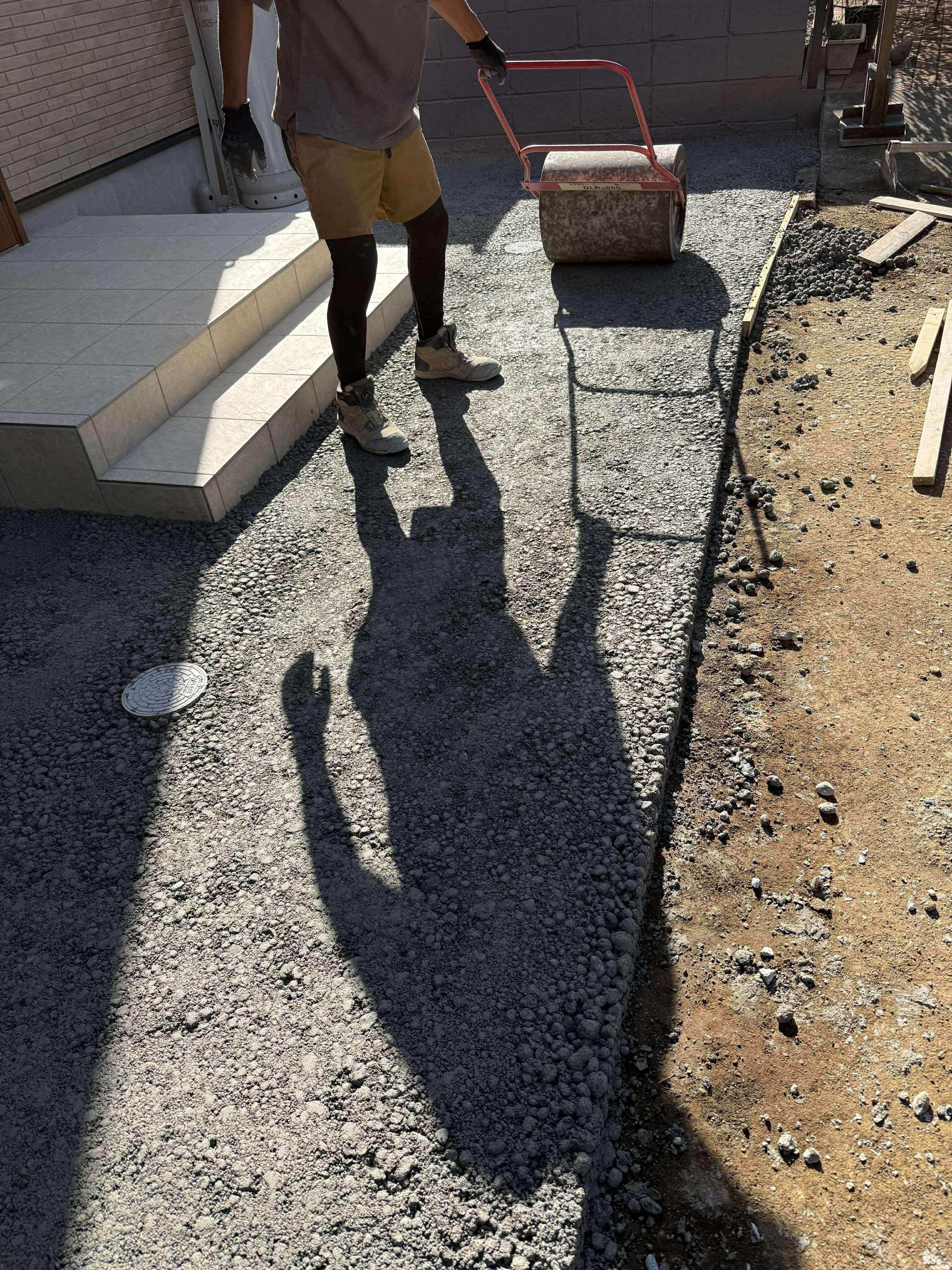 ここから、タンパやプレート、ローラなどの道具で締め固めれば完成。仕上がりです