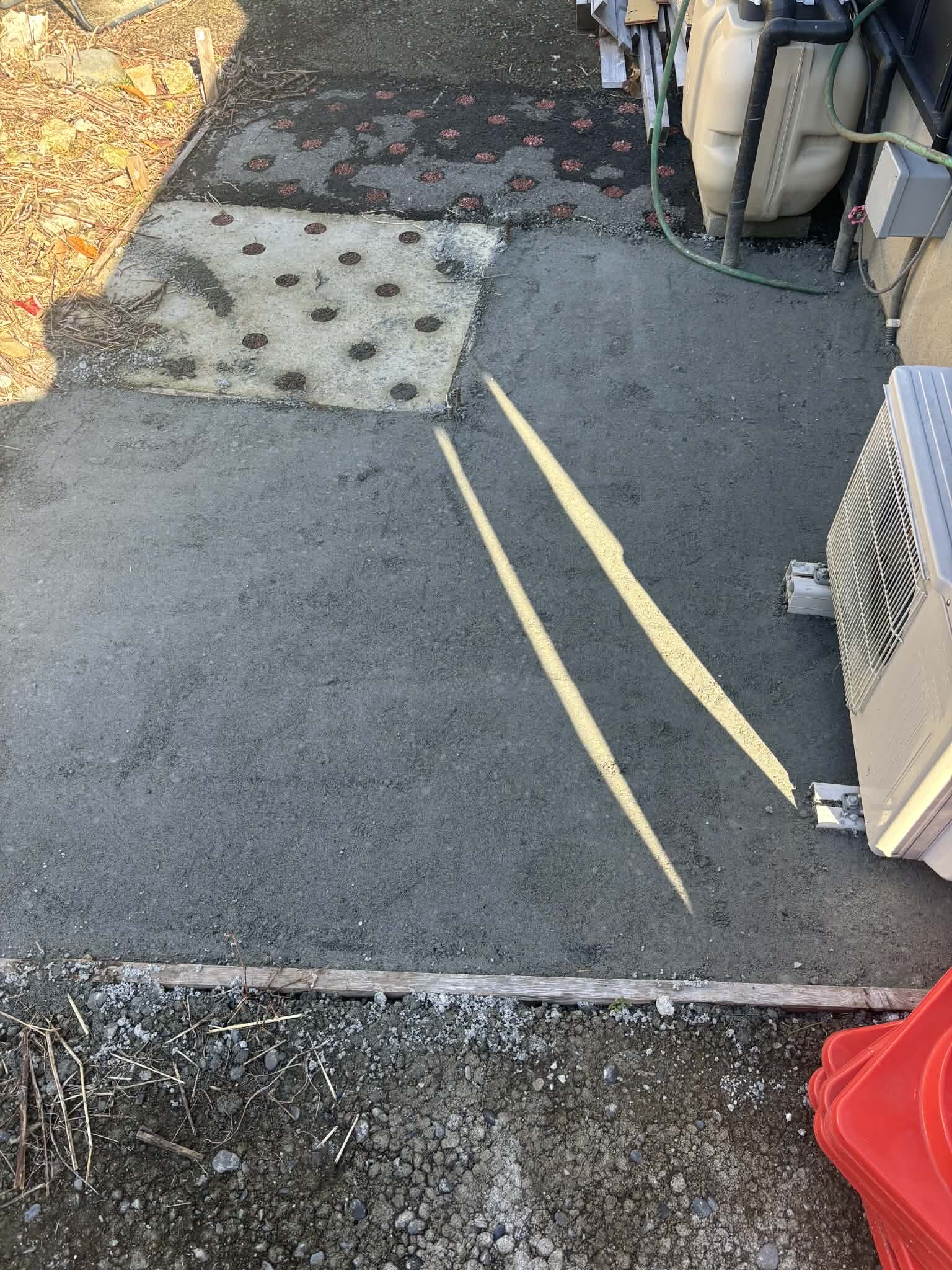 出張から帰ってきてすぐに駆けつけたのは まさ固が設置されてあるナマコンバレーのLab外構。水に濡れてもコンクリートなのに鼠色に染まらないのが面白い