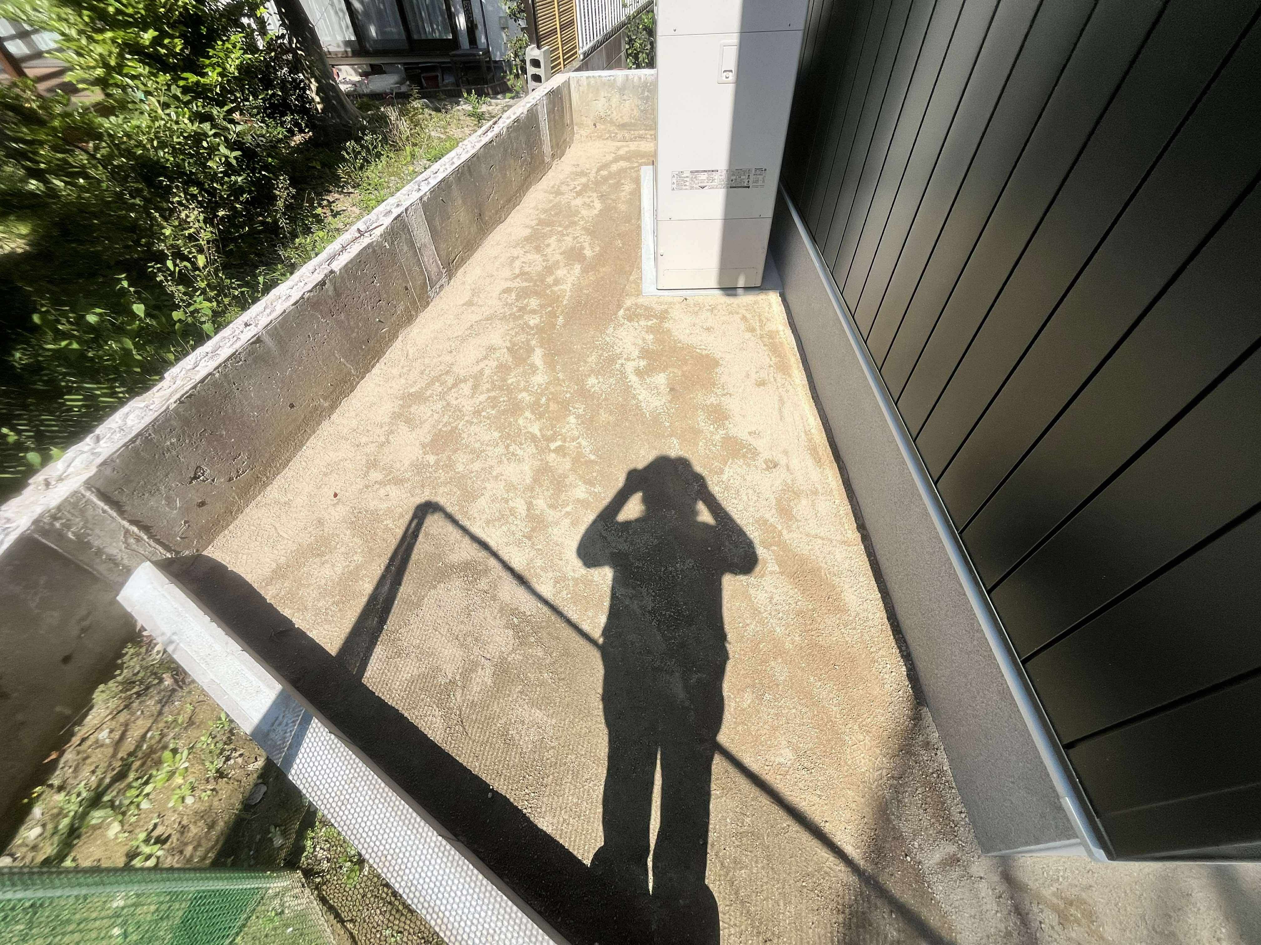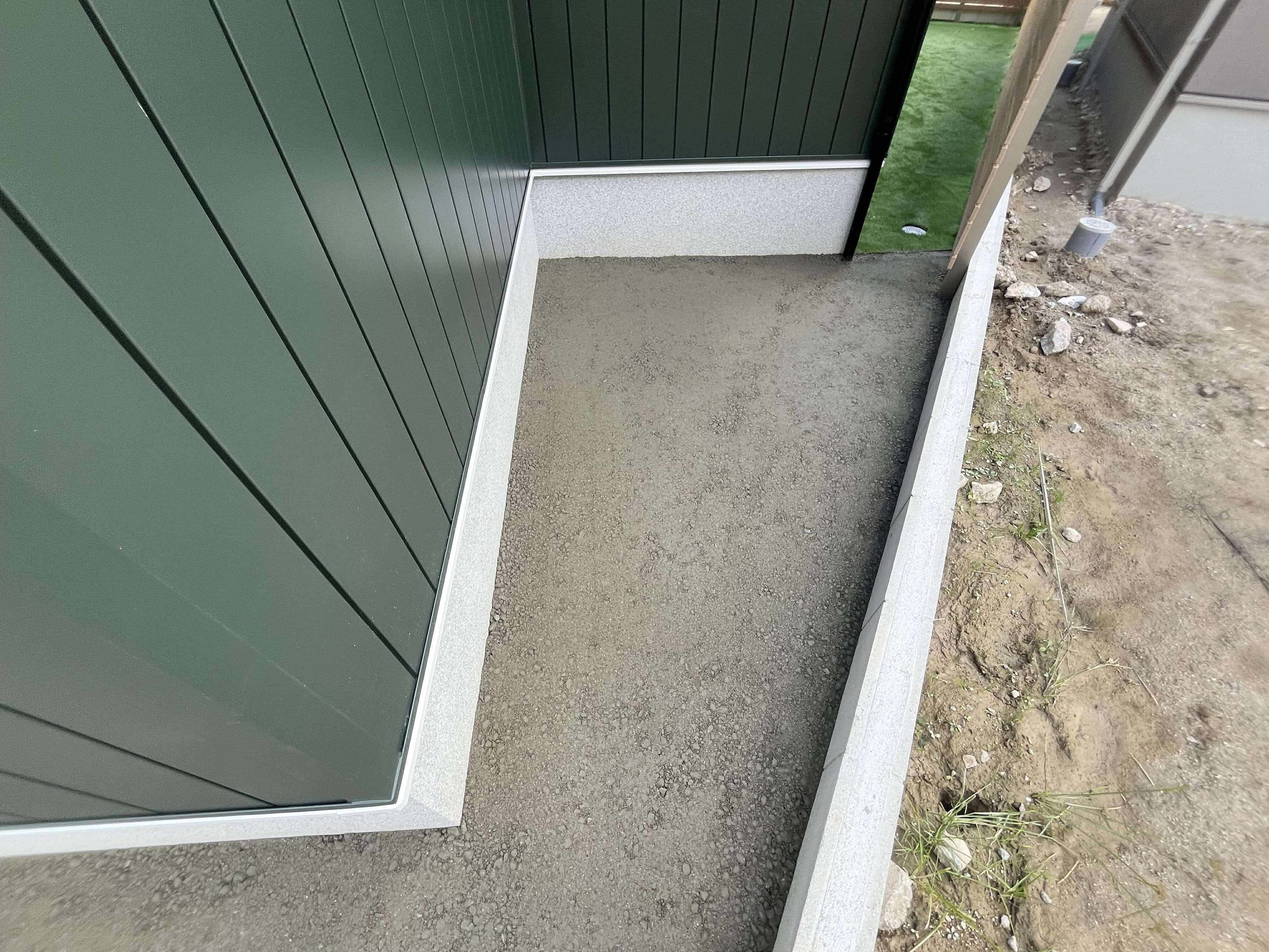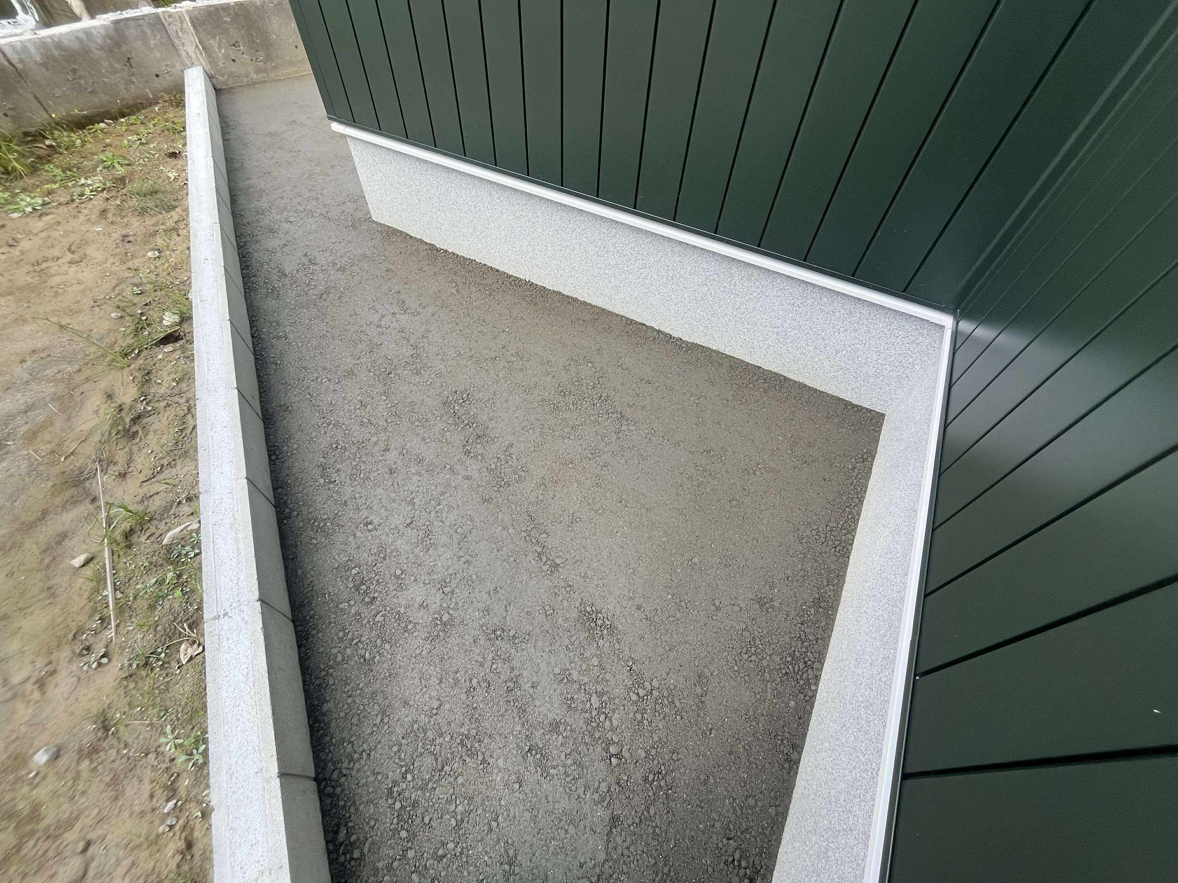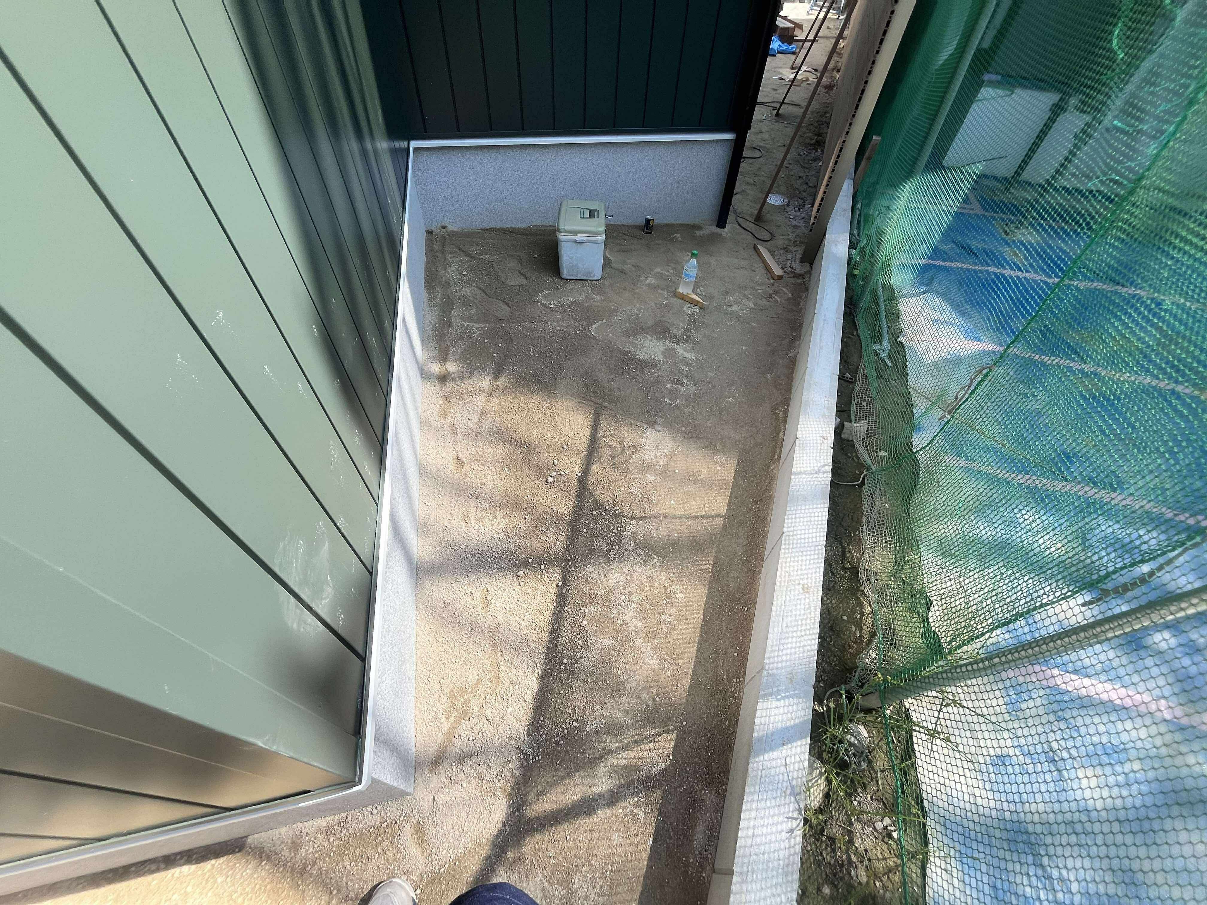 新築犬走、設計GLより5センチ下がりの状態にしていただいてからの敷設。