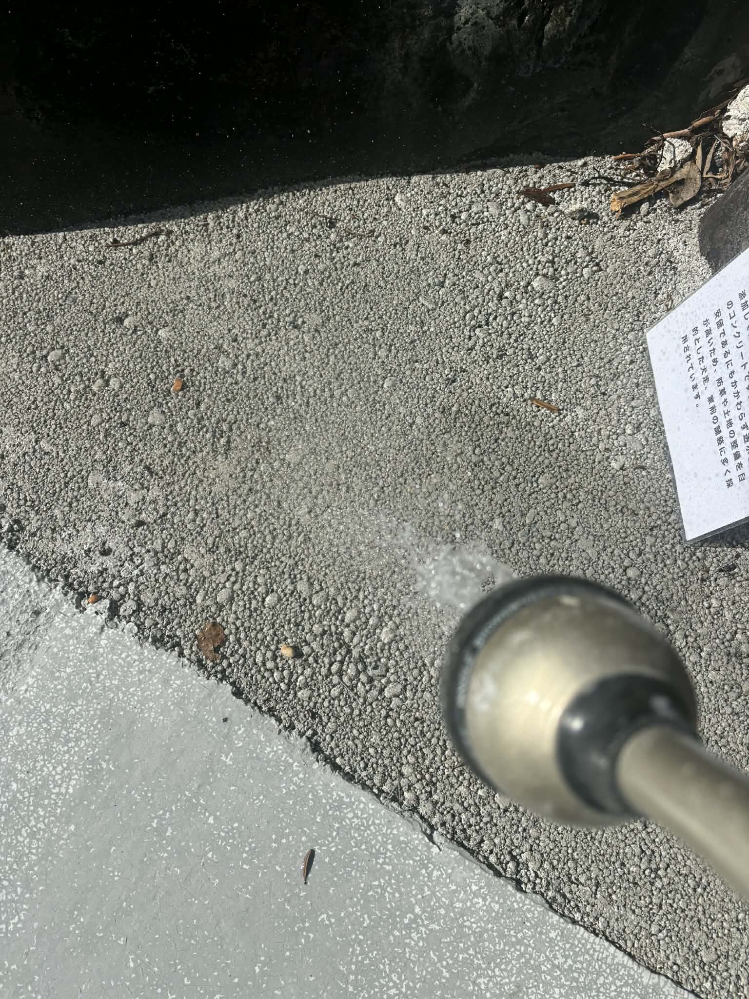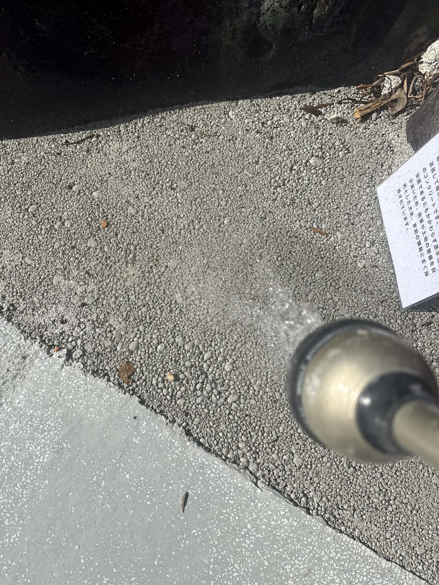 いろんなコンクリが展示してあって、写真のように水をかけて透水性や撥水性などをご覧いただくことができますナマコンバレー(LAB-RESORT LUMBER BETON-VALLEY)