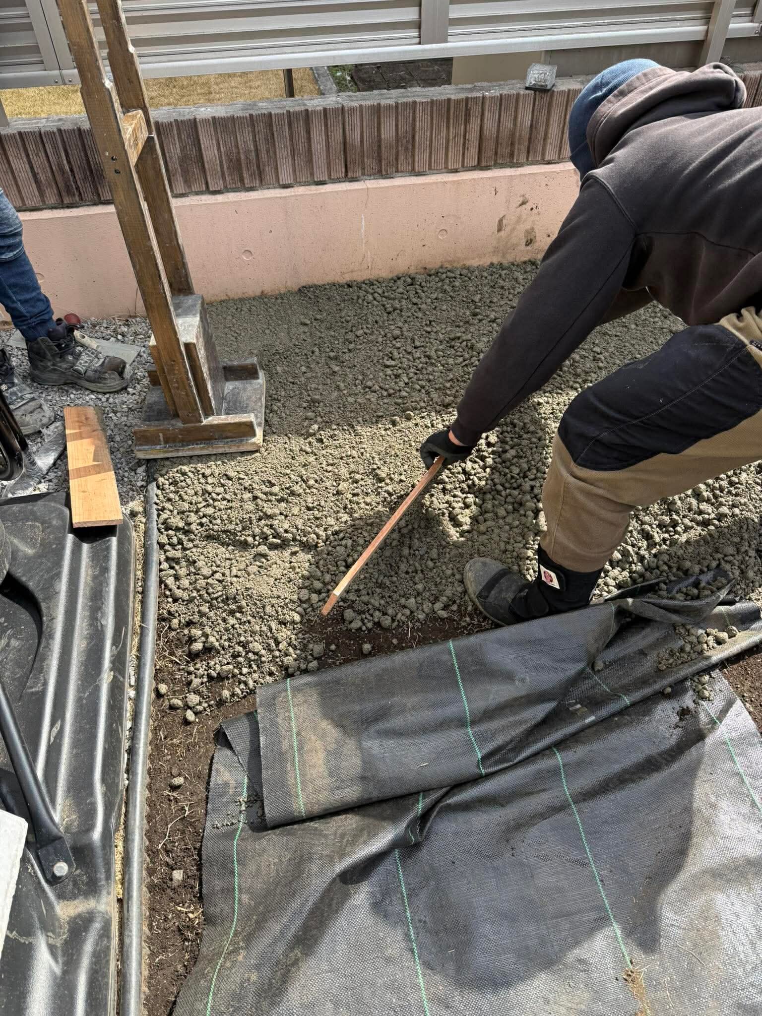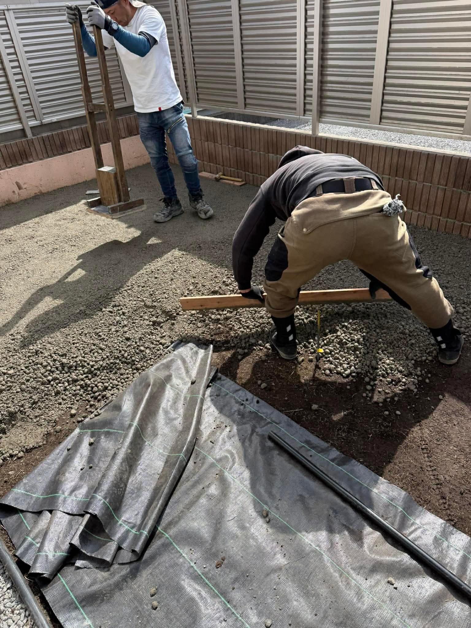 芝生を撤去バスケの練習と排水土間コン™︎ オワコン®︎まさ固®︎