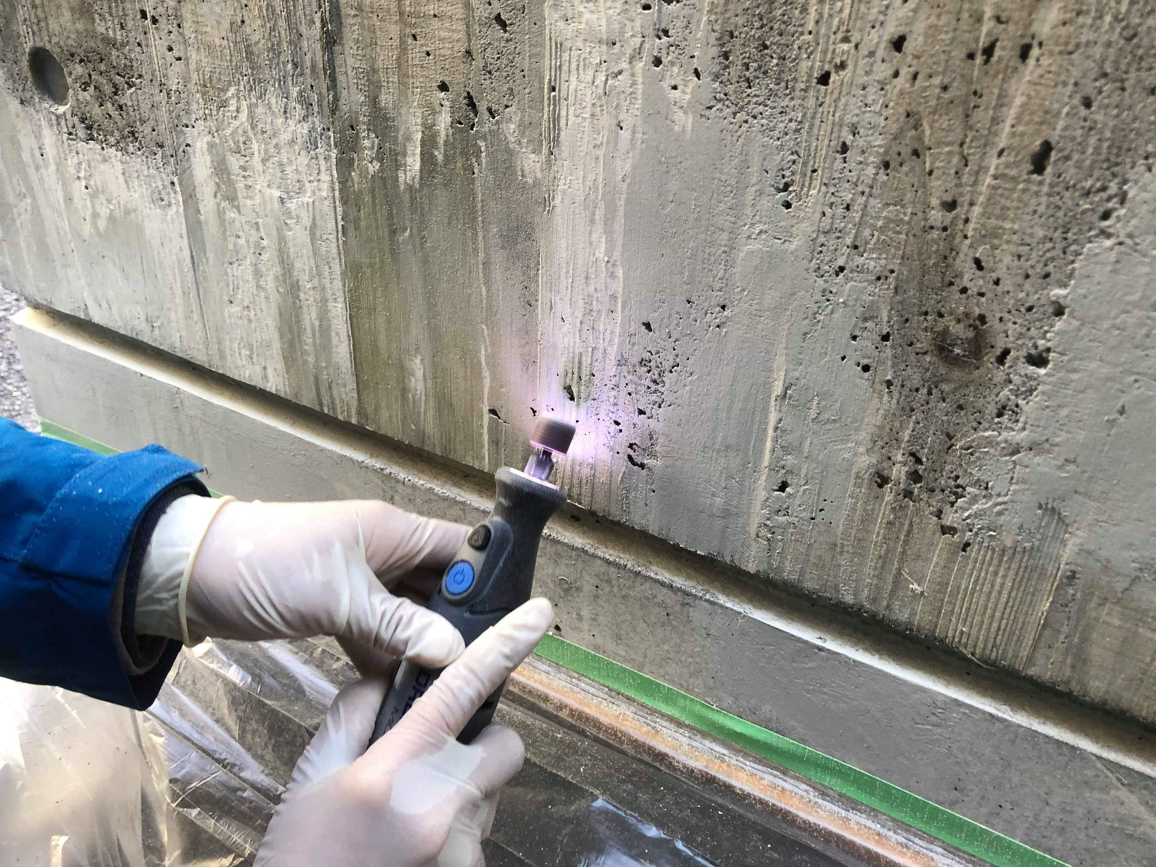 補修痕のボカシ(色合わせ、打ち放しペイント)にいろんなアプローチで実験。