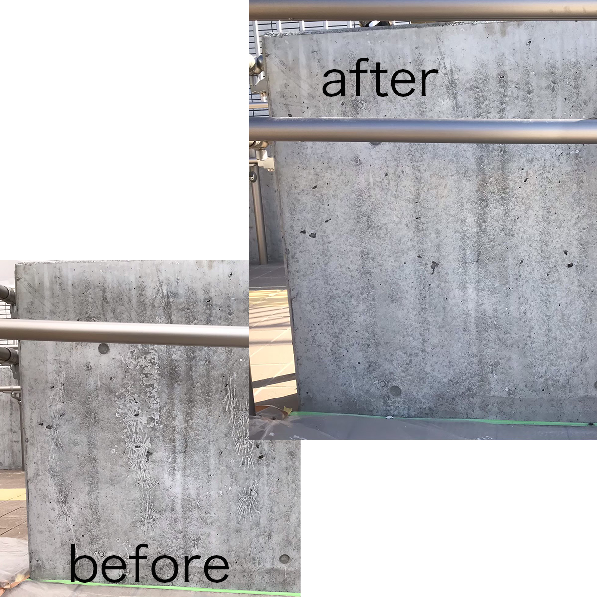 手すりの壁は人目にも触れるからコンパネ(型枠)の傷が転写されるようなことも問題となってしまう。