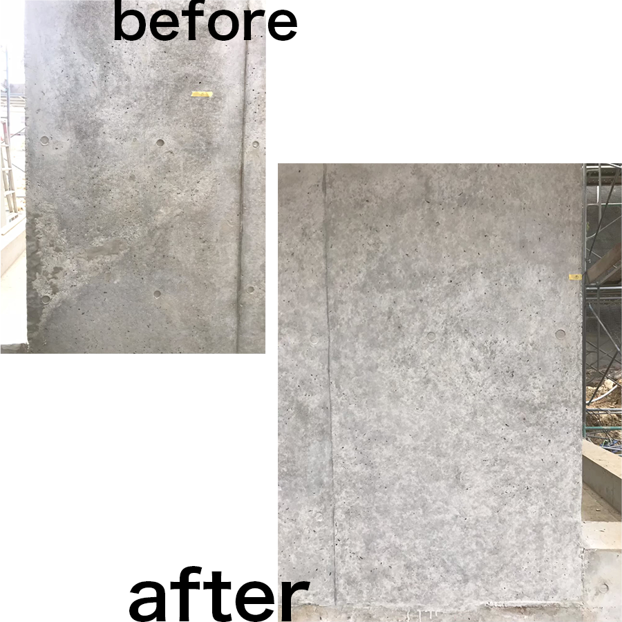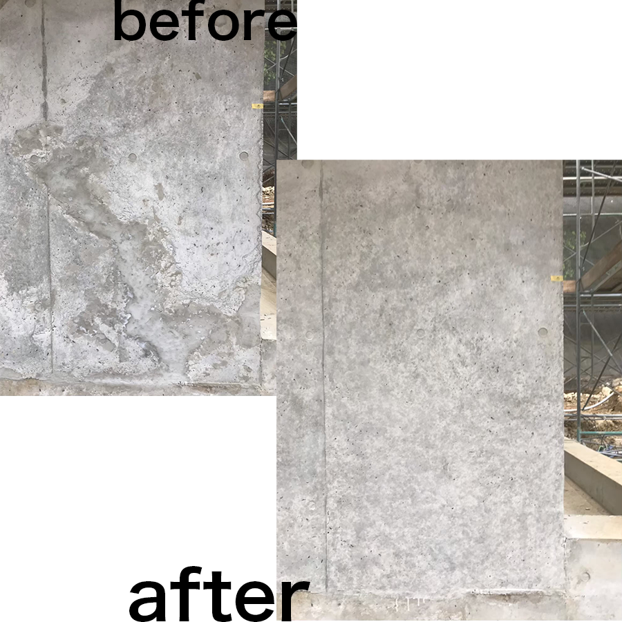 何かあっても、実績写真のように、「何もなかったかのように」打ち放しコンクリートはその美しい打ち肌が再現される。