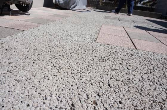 従来の土間コンクリートと違って水を通すための空隙を確保するためにペーストがほとんどない。