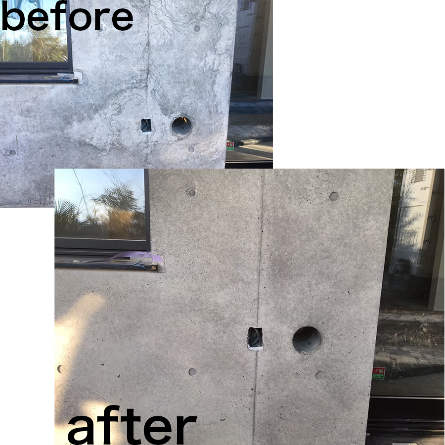 生コンポータルではドライテックとならび15年近い歴史を持つコンクリートの打ち肌の色合わせ補修。