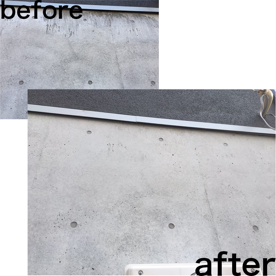 基礎天端(てんば)からのタレ痕が目線の高さにありとても目立つため色合わせ補修。