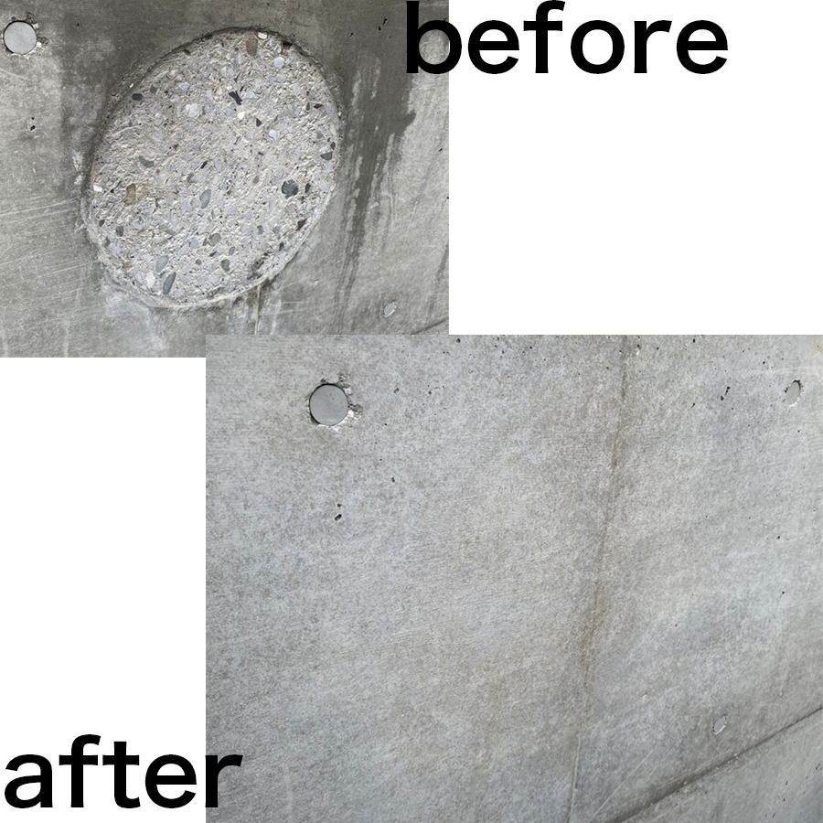 写真Beforeはその穴を補修用モルタルで埋めたもの。